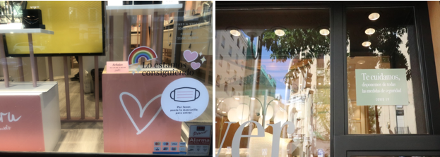스페인 산업 통상부와 보건부는 소매업 프로토콜 및 가이드를 발행하며 각 업계마다 준수해야 할 방역 지침 및 권장사항을 설정했다. 보석 관련 소매점 같은 경우는 특별히 보안을 위해서 입구에서 마스크를 잠시 벗을 수 있도록 요청할 수 있다. 고객은 매장에서 제공한 새 위생 장갑을 착용하지 않은 경우 어떤 경우에도 쇼케이스 같은 표면이나 제품을 만질 수 없고, 제품을 만지거나 테스트 한 경우 매번 소독해야 한다. [10]