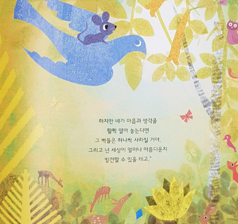 “그 친구들은 두려운 마음으로 봐서 그래. 너는 궁금해하면서 봤잖아. 넌 정말 용감했어. 진실을 스스로 찾아 나설 정도로 말이야. 꼬마 생쥐야, 네 인생에서 수많은 벽이 있을 거야. 어떤 벽은 다른 이들이 만들어 놓지만, 대부분은 너 스스로 만들게 돼. 하지만 네가 마음과 생각을 활짝 열어 놓는다면 그 벽들은 하나씩 사라질 거야. 넌 세상이 얼마나 아름다운지 발견할 수 있을 테고.”