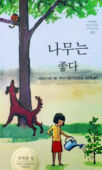 나뭇가지 사이로 불어오는 바람이 고마운 계절이다. 나뭇잎이 무성해지고 넓은 그늘을 드리우는 유월이면 아이들에게 꼭 읽어주던 그림책이 있다. 마르크 시몽이 그림을 그리고 재니스 메이 우드리가 글을 쓴 《나무는 좋다》이다. 1956년에 발간되었으니 쉰다섯 살이나 먹었지만, 언제 읽어도 감동이 밀려오는 책이다. “나무는 좋다.” 소리 내어 읽고 표지 그림만 보아도 기분이 좋아진다. 초록 잎이 한창인 나뭇가지 위에 고양이 한 마리가 아래쪽을 내려다보고 있다. 나무 기둥 아래엔 개 한 마리가 목을 한껏 빼고 고양이를 올려다본다. 커다란 나무 앞쪽엔 여자아이가 작은 나무에 물을 주고 있다. 아이들은 표지만 보고도 나무의 좋은 점과 나무와 관련된 각자의 경험을 무수히 쏟아냈었다.