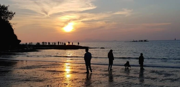 늦은 점심을 먹고 한참을 쉰 뒤 격포 채석강으로 향했다. 우리가 도착했을 땐 바닷물이 가득 들어와 있었다. 아쉽게도 수만 권의 책을 쌓아놓은 것 같다는 퇴적암층은 제대로 볼 수 없었다. 아쉬운 마음도 잠시 하늘과 바다가 노랗고 붉은빛으로 물들기 시작했다. 구름 사이로 노랗게 풀어지던 노을이 주홍빛으로 퍼지며 서쪽 하늘을 물들였다. 바다와 물에 젖은 백사장 위로 반사되는 노을을 바라보는 남편과 내 얼굴에도 석양빛이 물들었다. 아름다운 석양이 이번 결혼기념일 여행의 막을 내리는 찬란한 휘장이 되어 주었다.
