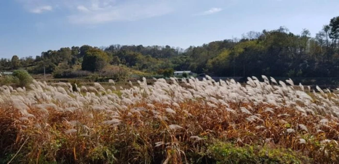 들길을 지나 산길로 들어서 낮은 고개를 하나 넘으면 다시 논과 밭이 이어진다. 논 옆 빈터에 억새꽃이 하얗게 무리 지어 피어있었다. 바람에 흔들리는 모습이 예뻐 사진을 찍는데 “에구구… 에구구…” 하는 소리가 들렸다. 왼편 논에서 벼를 베던 할아버지가 손으로 억새밭 건너편을 가리켰다. 고라니 한 마리가 논을 건너 숲 속으로 뛰어들고 있었다. 내가 카메라를 들었을 때 억새 숲에 있던 고라니가 알아채고 달아났다보다. 억새꽃 찍는다고 고라니를 쫓아버린 것이다. 고요를 깨뜨리며 고라니를 놀라게 한 것 같아 괜히 미안해졌다.