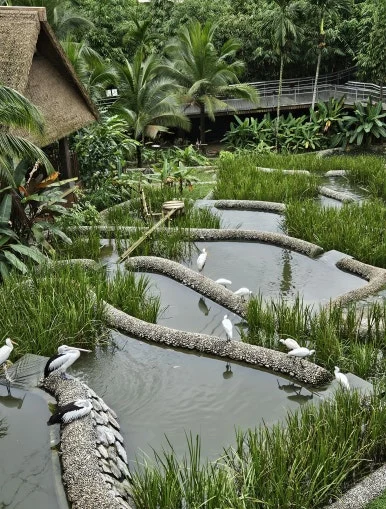 내가 발가락 고통을 호소하는 중에도 남편과 아들의 발걸음은 가벼워만 보였다. 우린 홍학무리와 앵무새 그리고 낯선 이름의 생김새가 희귀한 새들과 사진을 찍었다. 거대한 새 공원 안에는 새의 종류에 따라 조성된 작은 공원들이 곳곳에 흩어져 있었다. 인도네시아 발리의 계단식 논을 모티브로 만든 구역에선 두루미와 공작새들을 만났다. 공원 안 원형극장에선 새들의 화려한 묘기가 펼쳐지고 있었는데 우리가 도착했을 땐 홍학무리의 쇼가 끝나가고 있었다.