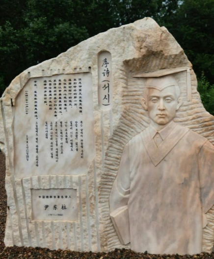 다음 목적지는 용정의 명동촌에 있는 윤동주 시인 생가였다. 여행을 떠나기 전부터 기대했던 곳, 1917년 12월 30일 시인이 태어난 곳이었다. 명동촌 입구엔 ‘윤동주 생가’라고 새겨진 커다란 바위가 방문객들을 맞이하고 있었다. 윤동주 시인의 자취를 느낄 수 있는 곳에 왔다는 사실에 마음이 설렜다. 그런데 생가 입구 커다란 바위에 쓰인 시인의 이름 위에 ‘중국 조선족 유명 시인’이라고 쓰여 있어 씁쓸했다. 중국의 동북공정 의도가 느껴져 마음이 불편하고 께름칙했다.