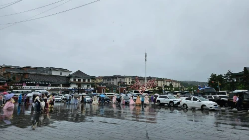 한 시간쯤 달려 연길의 조선족 민속원에 도착했다. 민속원 주변은 빗속에서도 전통 한복을 차려입은 사람들로 북적였다. 짙은 화장에 화려한 한복을 차려입고 사진을 찍는 여행객들 대부분은 중국 사람들이었다. 민속원에선 한국의 전통 기와집과 정자, 청사초롱 모양의 가로등, 홍살문 그리고 잘 가꿔놓은 정원을 볼 수 있었다. 겉모습은 우리나라에 있는 민속촌을 닮았지만 전해지는 정서나 느낌은 달랐다. 어딘지 중국풍이 섞여 있어서 그런 것 같았다. 민속원을 둘러보는 동안 빗줄기가 거세지면서 빗물이 신발 속까지 차올라 걷는 내내 질퍽거렸다.