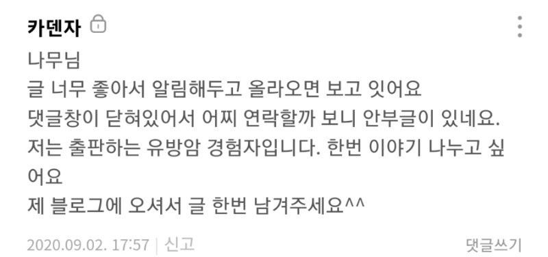 블로그 이웃이자 출판사 대표님인 카덴자 님이 보낸 편지와 카톡. 이 모든 우연과 인연의 겹....