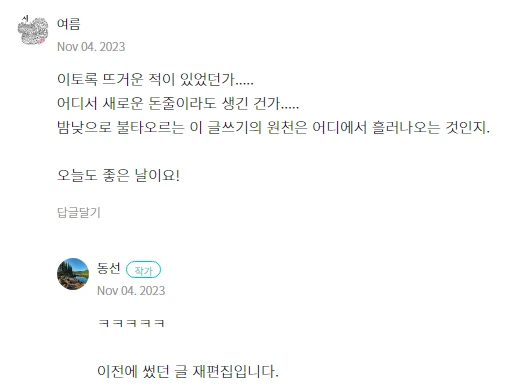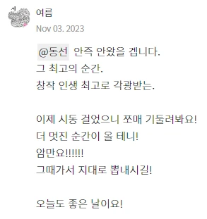 그런데요, 동선 작가님 인생 최고의 순간은 지금! … 나돈데. 저만 늦된 즐 알았더만, 아닌가 봐요.