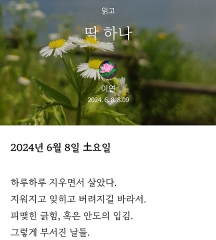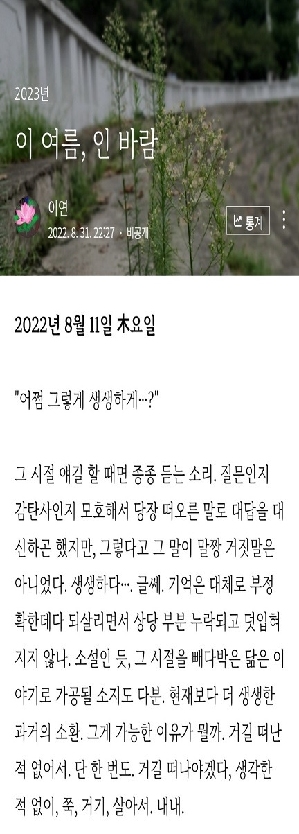 지금은 아무것도 보이질 않아 깜깜해도 이 계절이 끝나갈 즈음엔 분명 남은 게 있을 거예요. 우릴 성장시킬 무언가가. 이 여름 끝자락엔.' (이연, <영화처럼 산다면야> 중에서)