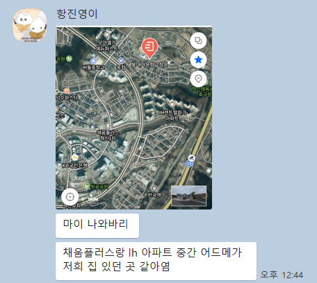 이렇게 산. 여기도 산. 산이 막 이렇게 막 꼬불꼬불, 꼬불꼬불. 지금은 이 산들이 없어요. 산을 다 깠어요. 그리고 이쯤에 되게 오래된 저수지가 있었는데 귀신이 나오는 저수지였거든요.