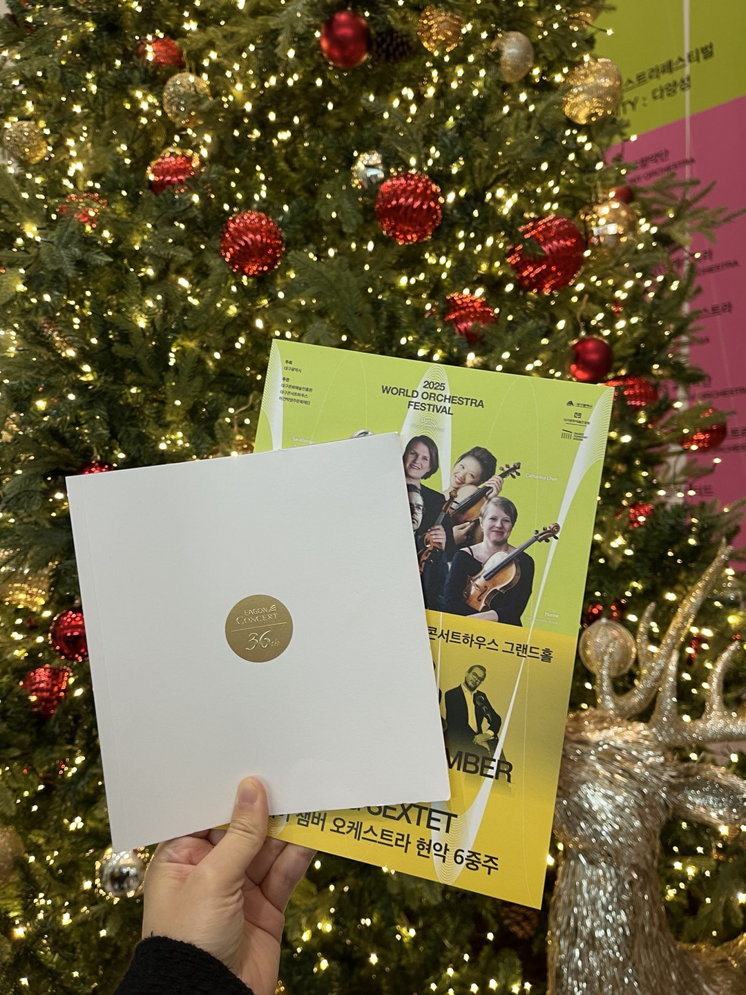 대구 콘서트 하우스도 처음 와봤는데, 부산 콘서트홀의 미니 버전 느낌이었다. 노르웨이와 북유럽을 대표하는 연주자들로 구성된 노르웨이 챔버 오케스트라 현악 6중주단이 총 9곡을 연주해주셨다. 같은 음악을 그 전날인 부산에서도 감상하고 대구에서도 감상을 했는데, 장소가 달라서인지, 조금은 색다르게 느껴졌다. 사회자분의 말씀도 더 귀기울여서 듣게 되고, 곡 설명도 더 꼼꼼히 읽고 들어서 더 잘 들리기도 했고. 무엇보다 대구 관객의 반응이 더 뜨거워서인지 앵콜 아리랑 곡도 더 들을 수 있어서 대구에 오길 잘했다는 생각을 했다. 공연이 끝나고, 싸인회가 있길래 맨 앞줄로 섰더니, 대표로 꽃도 받아서 연주자 한 분께 꽃도 드리는 영광을...!! 기다리면서 시간이 좀 있어서, 연주자분들에게 어제 부산 공연도 봤었다고, 대구에서 앵콜곡 들을 수 있어서 감사했다, 저도 엄마랑 노르웨이에 오로라 보러 갔었다, 뭐 이런 이야기도 짧게 나누었다. 휴무내고 대구까지 왔다니까 되게 반가워 하시기도 했다. 프로그램북에 싸인도 모두 받았지롱.
