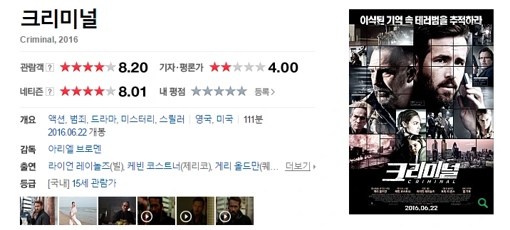 우연히 같은 날 본 영화. 전 CIA요원 '빌'의 기억을 싸이코패스 범죄자 '제리코'에게 이식하는 것을 시작으로, '제리코'를 따라간다. 타인과 공감하는 법을 몰랐던 '제리코'는 '빌'의 기억과 그의 가치판단 방식에 영향을 받으며 그의 정체성은 '빌'에 가까워진다. '빌'의 가족을 만난 후 '제리코'가 느끼게 되는 묘한 감정과 책임의식, 사랑은 전혀 다른 외형을 하고 전혀 다른 인생을 살아온 '제리코'를 '빌'의 아내와 아이가 또 다른 가족처럼 느끼게 하는 정서적 교감을 만들어낸다.