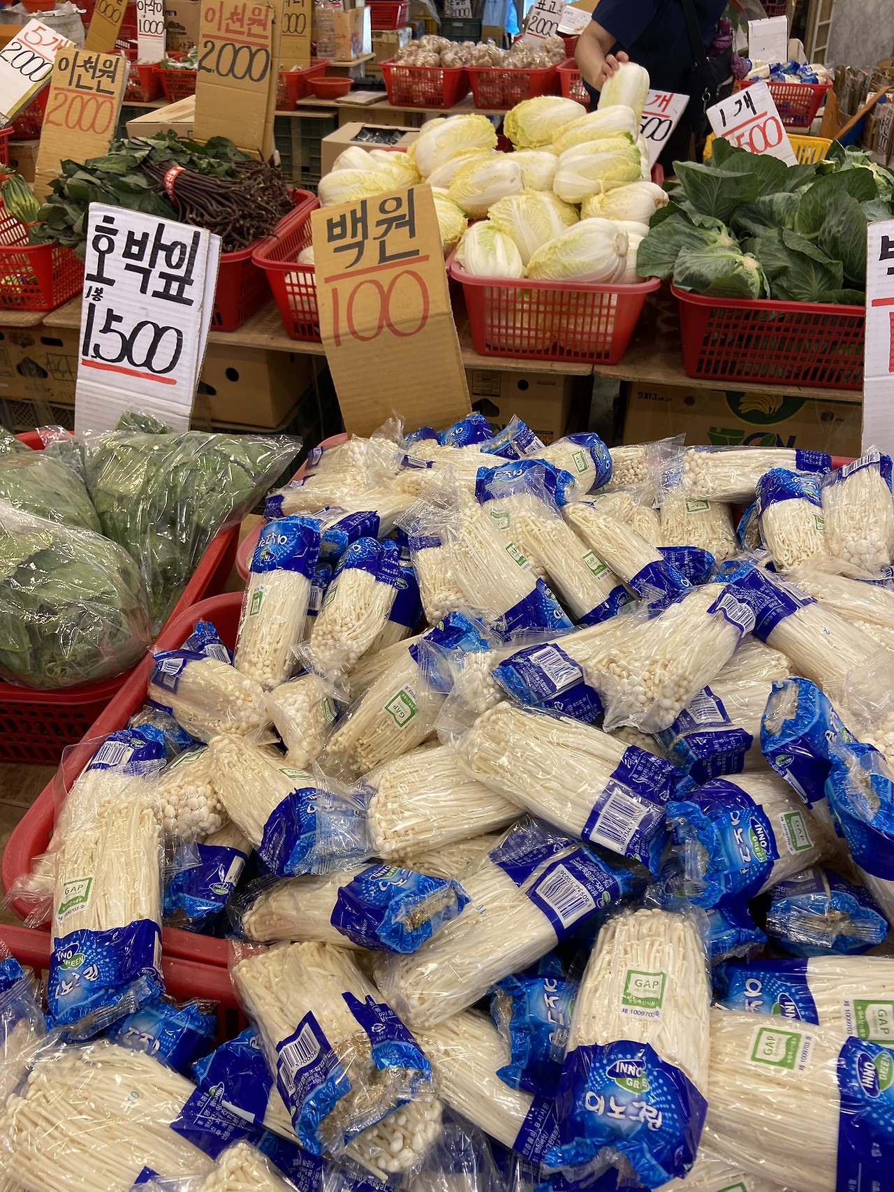 시장 구석 작은 채소 가게에서 팽이버섯을 100원에 샀고,