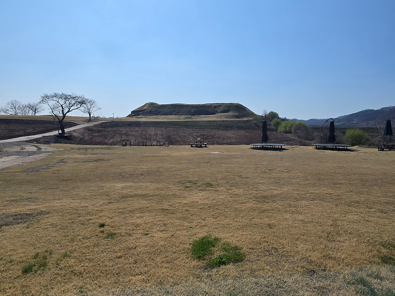 연천 장남로를 따라 어느덧 장남면 호로고루에 도착하니, 신록이 돋아난 나무들 사이로 마치 언덕 위 언덕 같은 구조물이 멀리 보입니다.