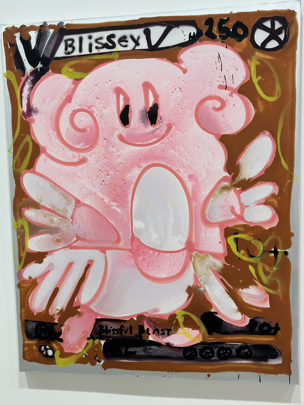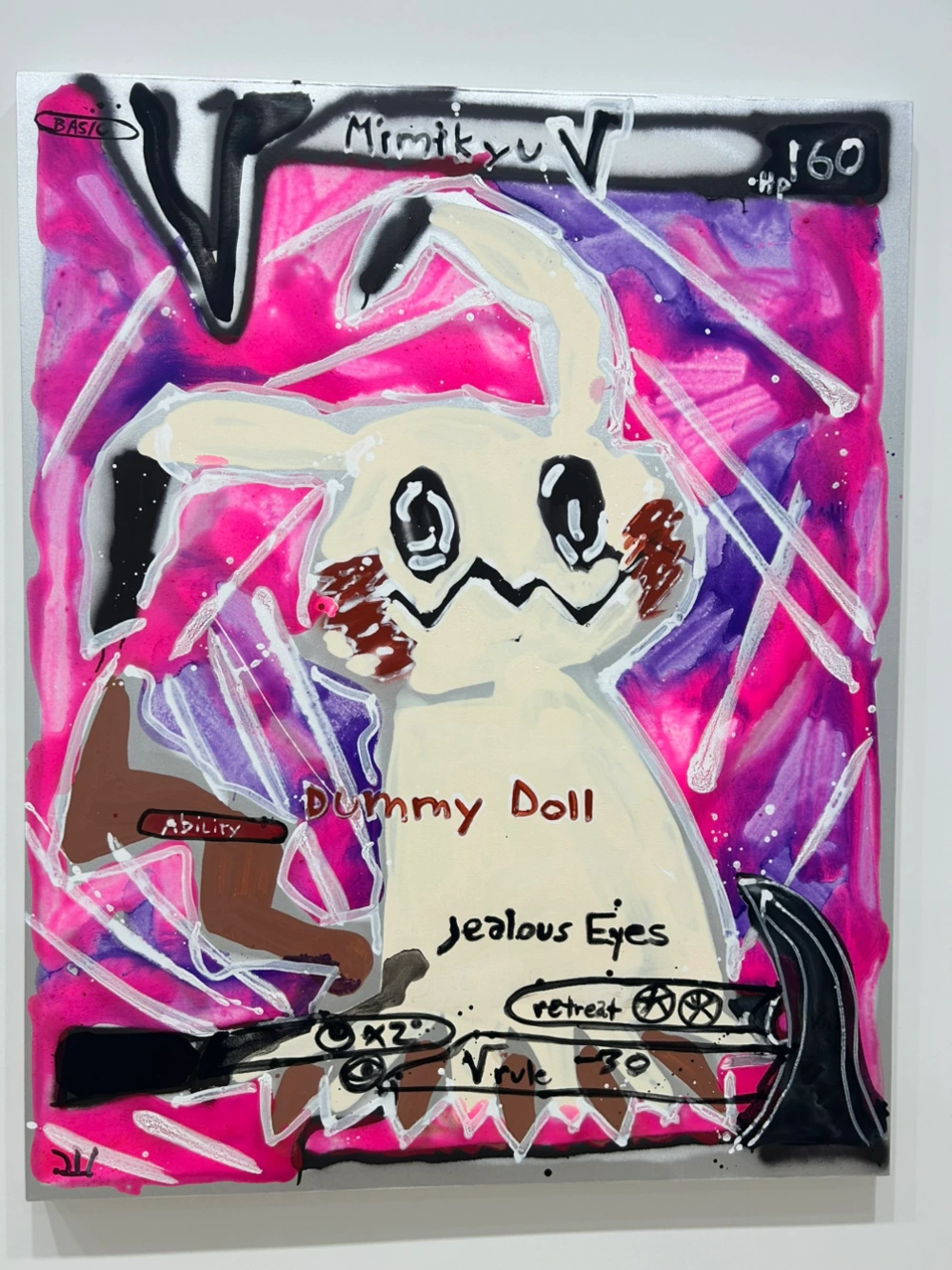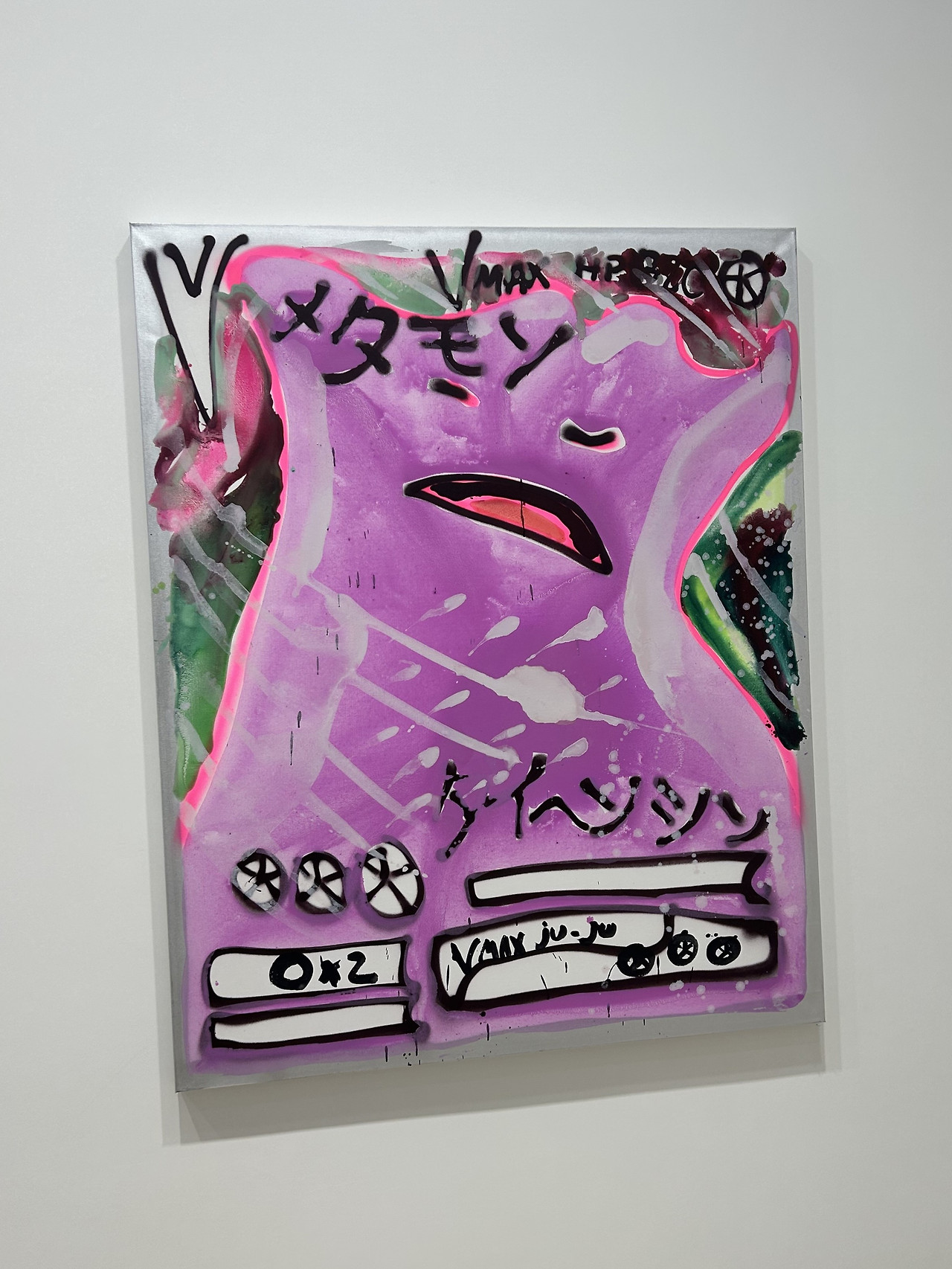이미 만화 캐릭터 핑크 팬더와 가필드 시리즈를 발표한 바 있는 그녀는 홍콩에서 분홍색과 라벤더 톤의 포켓몬스터 디토(Ditto/메타몽)’를 앞세웠다. 디토는 그 색상 때문에 포켓몬 캐릭터 중 작가가 가장 좋아하는 것으로 다른 포켓몬뿐만 아니라 여러 톤의 분홍색과 파란색으로 변신할 수 있다. 그녀는 이번 전시에서 디토뿐만 아니라 피카츄(Pikachu), 마자용(Wobbuffet), 따라큐(Mimikyu), 럭키(Chansey) 등의 캐릭터가 등장하는 포켓몬 트레이딩 카드를 모방한 연작을 보여준다. 아들과 함께 실제로 포켓몬 카드를 모으고 있다는 그녀는 이로써 이 카드의 새로운 창조자가 되었다.