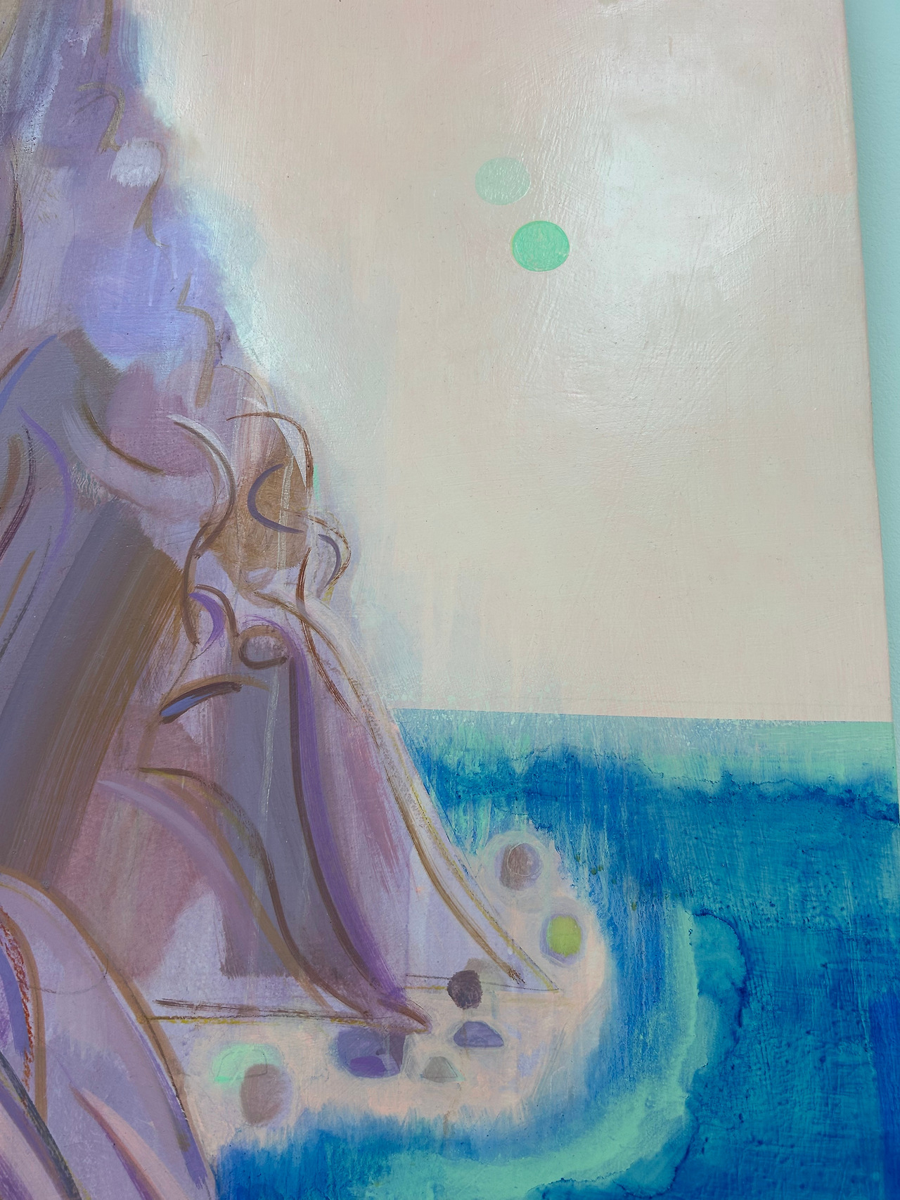 그녀가 만들어 내는 풍경화의 독특한 점은 바로 자신이 경험한 장소에서 수집한 재료들을 가공하여 만들어 내는 이 ‘핸드 메이드’ 안료에 있다. 작가가 직접 분쇄하여 물리적으로 혼합한 미세한 가루들은 독특한 색감을 만든다. 그리고 이들은 또 다른 안료들과 함께 표면에 광택이나 특유의 질감을 구현해 작품 자체를 다양한 색깔을 가진 반투명한 조약돌 같은 느낌으로 만든다. 실재 장소에서 온 재료들이 만들어 내는 이 질감이 결과적으로 묘사한 장소를 실제와 다른 제 3의 장소로 느끼게 하는 것이다.