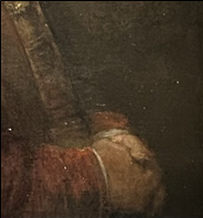 렘브란트는 주변부보다 밝게 그려진 얼굴을 제외하고 모두 어둡게 처리했지만 한 군데를 더 밝게 표현했다. 실제로 붓이 들려 있었지만 그림 속에서는 부드럽게 모아진 손이다[그림3]. 이 흐릿한 손에서 자화상을 통해 예술적 실험을 멈추지 않은, 완벽함을 향한 화가로서의 욕망에 가까운 소망이 읽힌다.