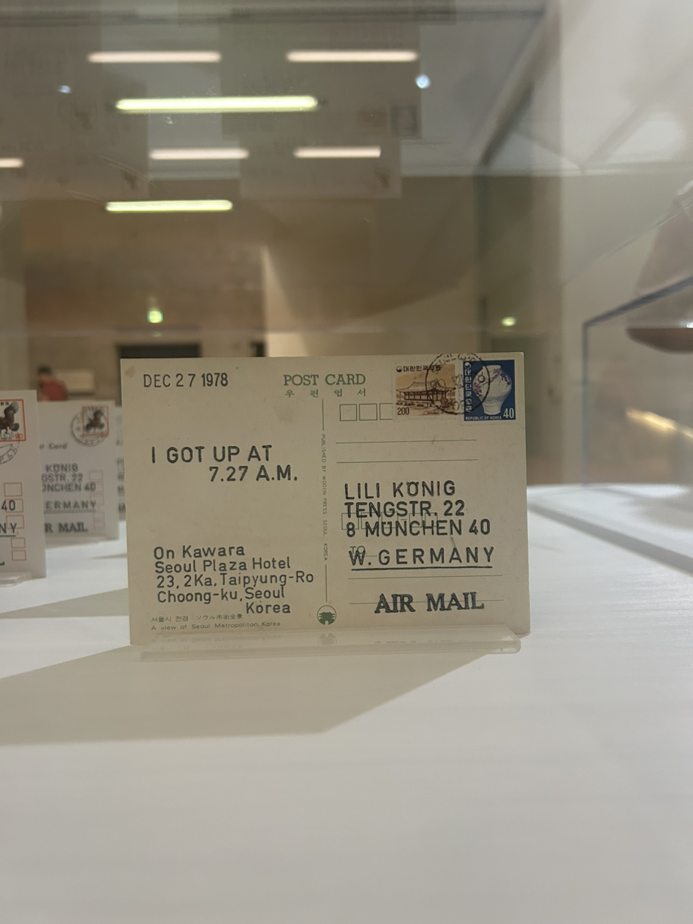 시간에 대한 응답으로 열리고 있는 전시의 큐레이팅도 작품처럼 군더더기가 없다. 이번 전시에서 1968년부터 1979년까지 이어진 <I Got Up>, <I Went>, <I Met> 시리즈와 1970년부터 2000년대까지 이어진 <I Am Still Alive> 시리즈, 1966년부터 사망 직전까지 이어진 <Today> 시리즈, <One Million Years>, <Pure Consciousness>까지 작가의 모든 시리즈를 볼 수 있다.