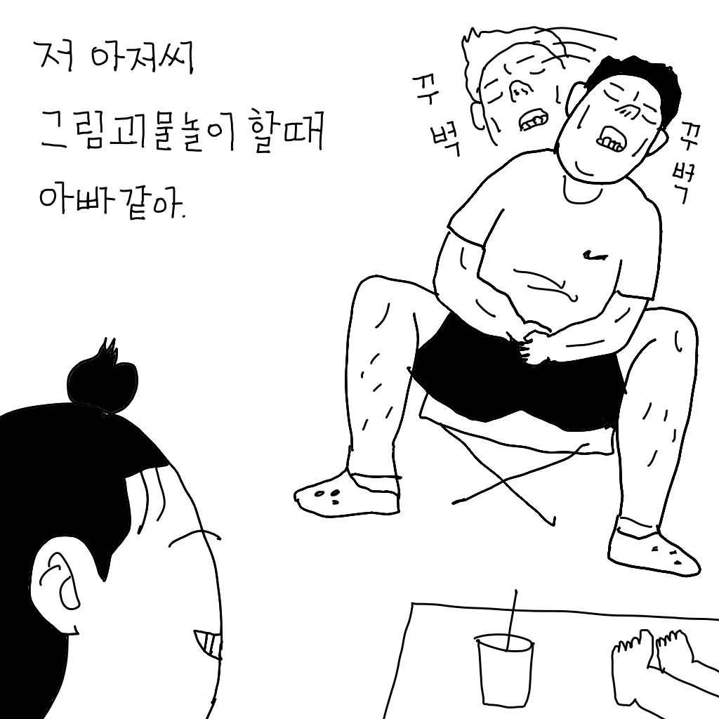 아빠가 아닌 다른 사람이 조는 모습을 처음으로 봤다.