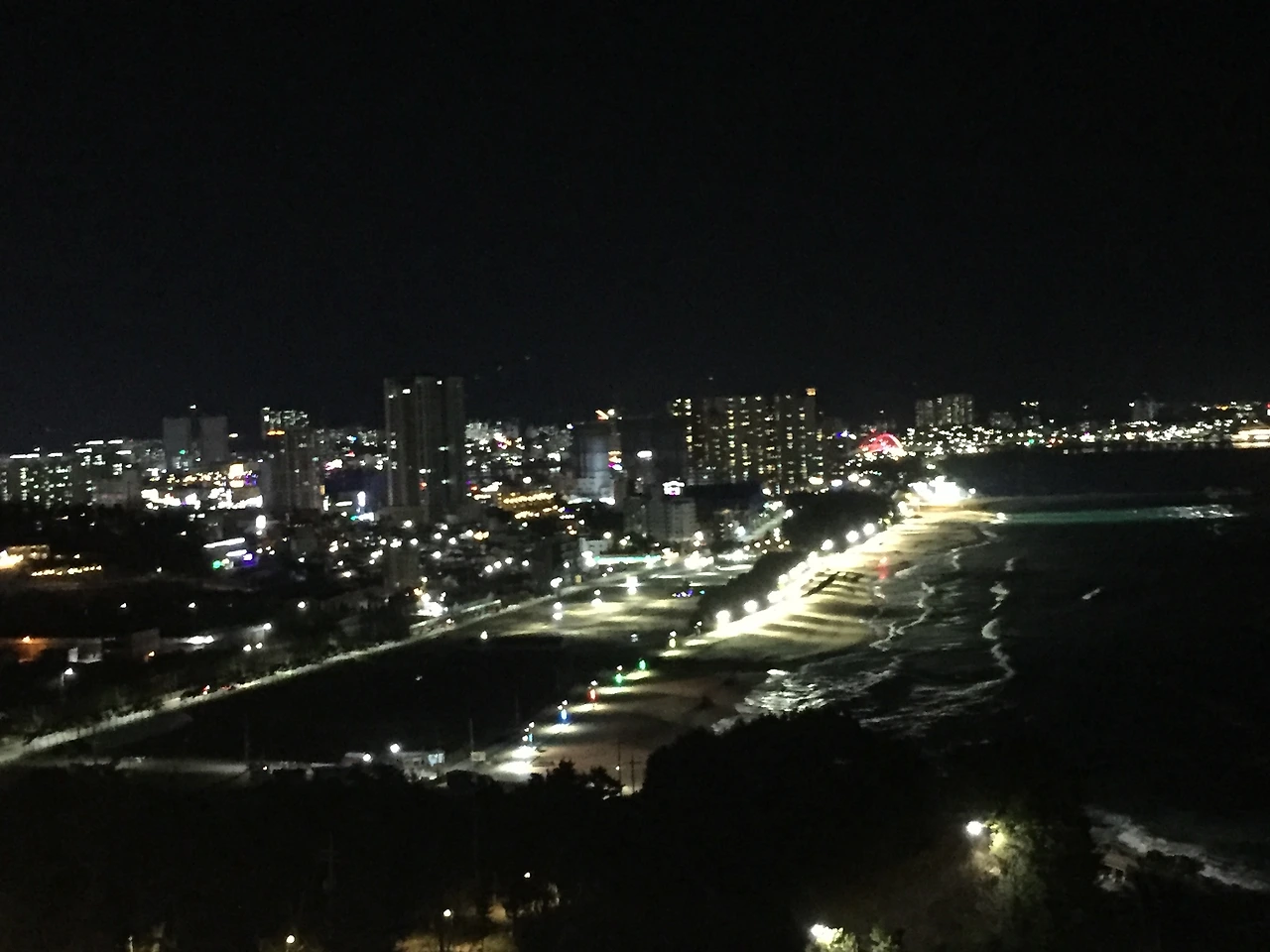 식사를 마치고 호텔 라운지를 찾았다. 저녁이 되어 객실에 모두 불이 켜졌겠지만, 위의 3-4개 층은 온통 불이 꺼져 있다. 평일 숙소가 그런 것인지, 코로나로 인해 찾는 사람이 줄어든 것인지... 라운지에도 어린아이들과 함께 온 가족 2팀과 우리가 전부였다. 일행의 목소리만이 실내를 가득 채웠다. 높은 곳에서 내려다보는 바닷가의 야경은 그림 같았다.