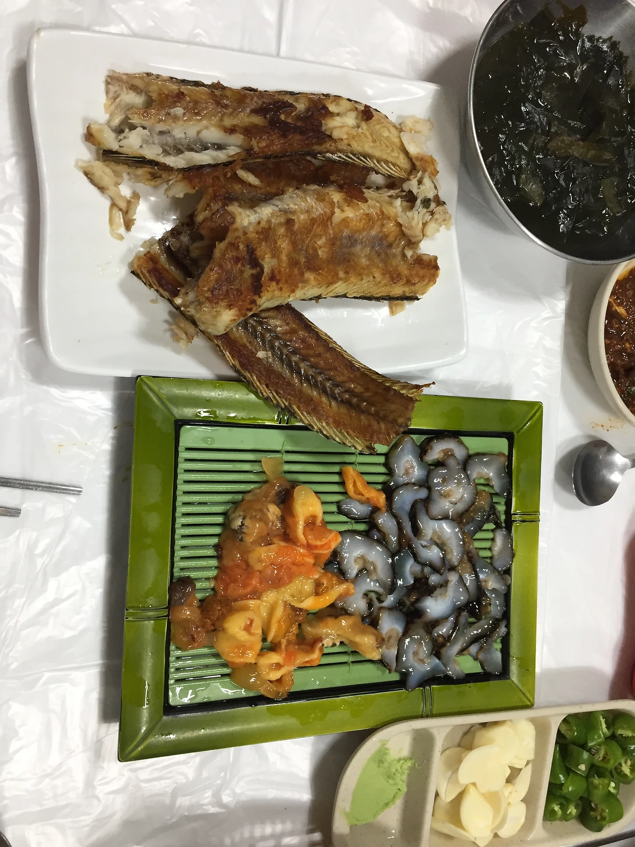 저녁은 바닷가에 왔으니 외옹치에서 회와 매운탕으로 했다. 4인 테이블이 5개 놓인 자리는 미리 와서 식사하는 손님과 우리 일행뿐, 역시 한산했다. 옆에 나란히 위치한 횟집들도 비슷하게 한 두 테이블에 손님이 있거나 비어 있었다. 사정은 모르지만 한산한 것은 분명했다. 찾은 식당도 가족이 함께 운영했었는데, 아주머니 한 분이 혼자 모든 역할을 하고 있었다. 여행하는 사람의 입장에서는 이렇게 한산한 관광지를 마주한 적이 있었나 싶을 정도로 낯선 풍경이었다. 어딜 가든 사람으로 북적대서 밥을 먹으려고 해도, 차로 이동하려고 해도 기다리는 것이 일상이었는데 이번 여행은 사정이 많이 달랐다.