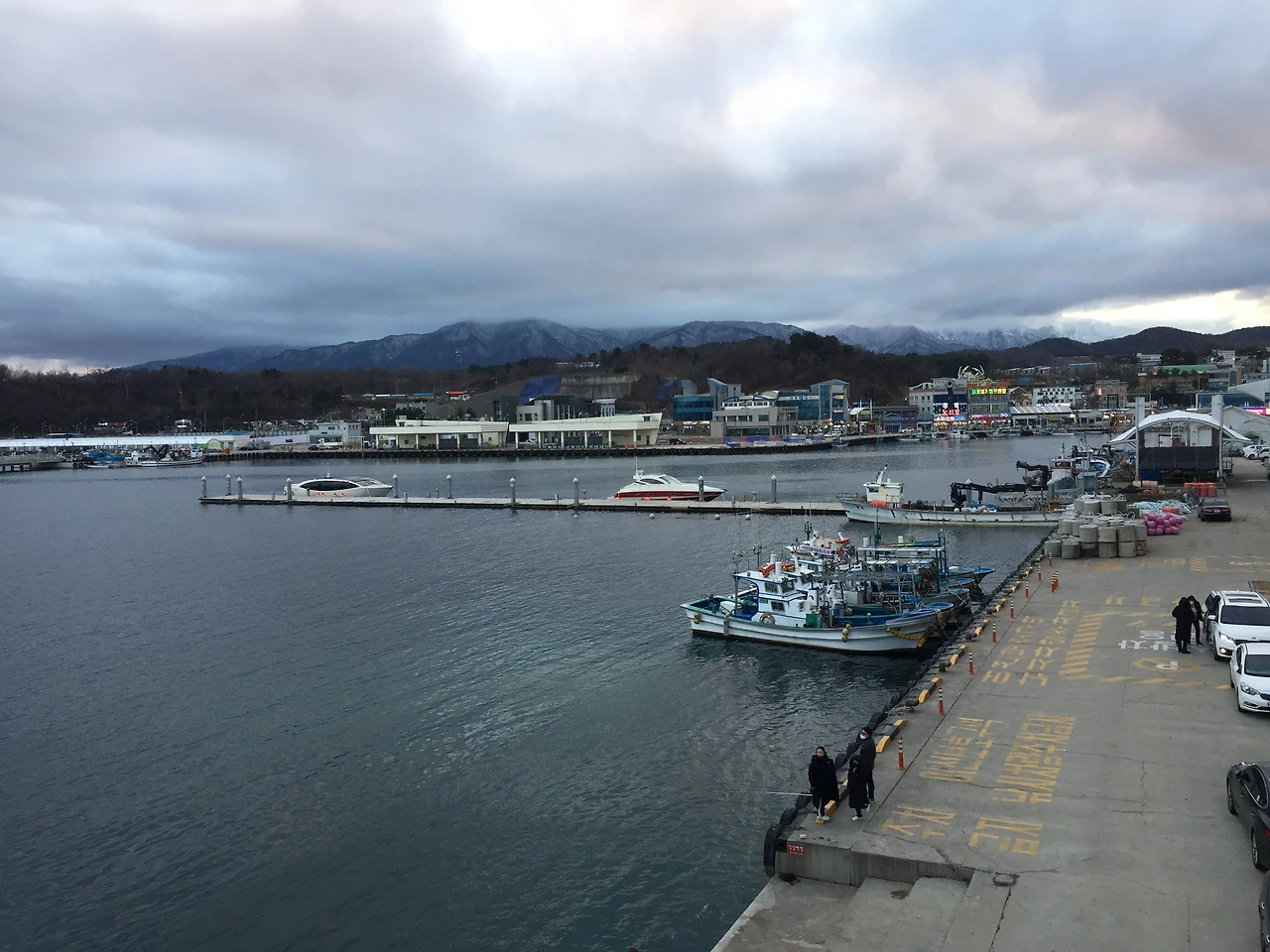 숙소 근처의 바닷가로 향했다. 여름에 찾는 바닷가는 생선 비린내를 포함해 습한 날씨에 바닷가 비린내가 심하게 났었는데, 겨울 바다는 맑고 깨끗했다. 역하지 않은 시원한 바다 냄새가 났다. 길게 방파제를 쌓고 만들어 놓은 바닷가에 인접한 숙소는 건물만 덩그러니 있는 것처럼 오히려 쓸쓸했다. 숙소 근처의 포구에 인접한 공영주차장도 텅 비어있었다.