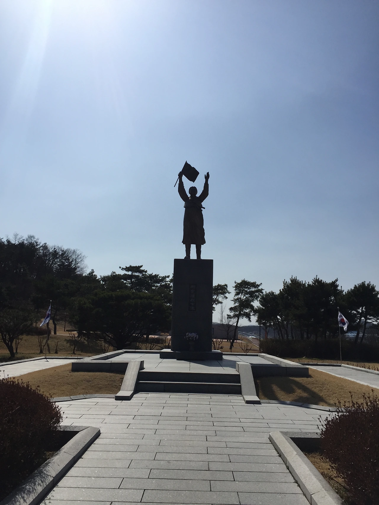 역시나, 이곳도 휴관이었다. 한적한 시골, 더 한적하게 있는 기념관이었다. 한쪽에 유관순 열사의 동상이 있었고 3.1 운동에 관한 설명들이 적혀있었다. 최근 수여된 것인지는 모르겠지만, 독립운동가들에게 독립훈장이 수여되었다는 설명과 함께 그들의 이름도 새겨져 있었다. 바람이 적당이 불어 아홉 기의 태극기가 나란히 펄럭이는 모습은 뭉클했다. 천안 3경이었다.