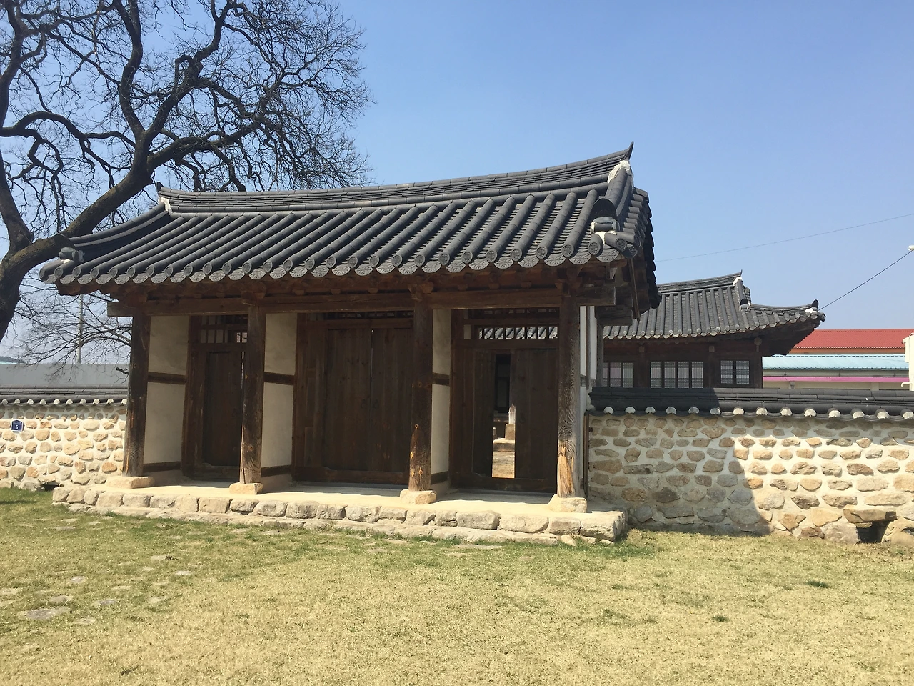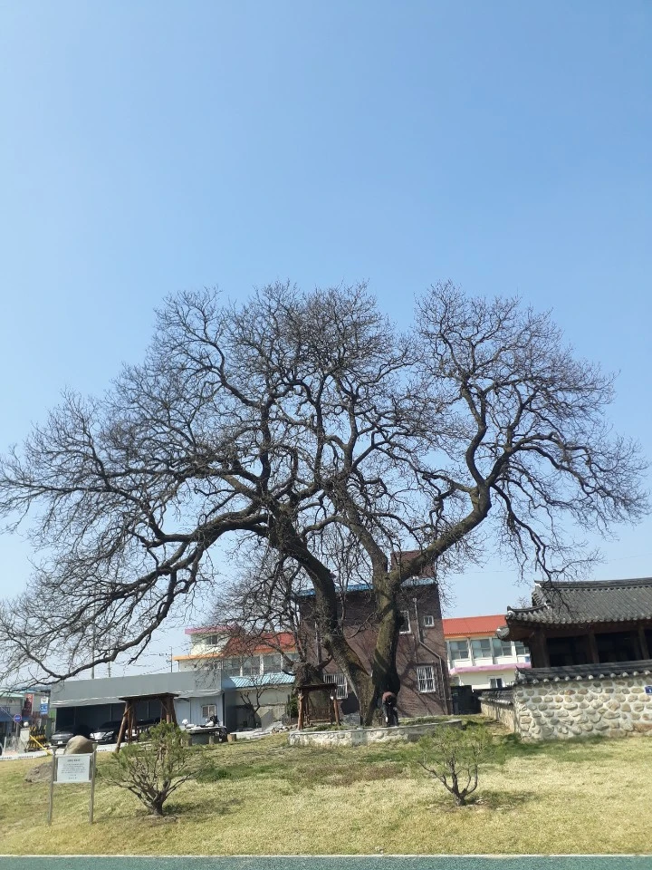 아침 먹고 느긋하게 출발해서 시간은 점심시간을 훌쩍 넘기고 있었다. 산소에 가면 늘 들르는 고향식당에서 청국장과 김치찌개를 주문해서 먹고 나와 숨을 돌리며 옛 관청 터가 조성된 곳을 둘러보았다. 깨끗하게 단장된 관청 옆, 수령이 오래된 나무 한 그루가 서 있었다. 늘 보고 그냥 지나치던 것이었는데, 앞에 놓인 팻말을 읽으니 소원 비는 나무라고 소개되어 있다. 회화나무라고 옛날 과거에 급제하면 꽂아 주는 어사화 꽃나무고 시험을 앞둔 사람들은 소원을 빈다고 적혀있었다.