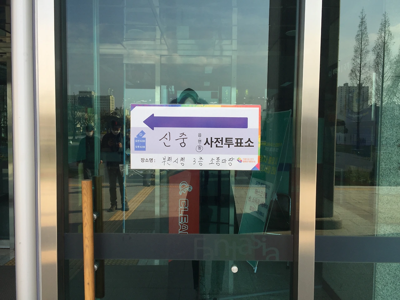 오늘은 사전투표 첫째 날이다. 내가 사는 곳의 사전 투표소는 부천시청 3층에 설치되어 있었다. 투표소로 향하는 길, 날씨도 따뜻하고 투표하기 딱 좋은 날이다. 시청 안으로 들어가니 3층까지 엘리베이터를 기다리는 사람들이 많이 있다. 그렇지만 시간을 투자해서 일부러 걷기도 하니, 그냥 가뿐하게 걸어서 올라가기로 한다.