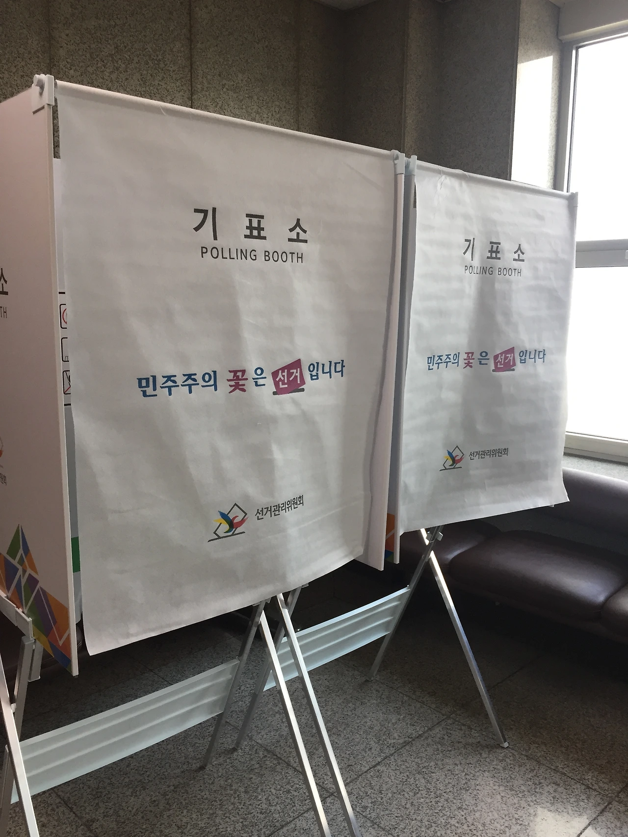 투표용지 두 장을 들고 부스로 들어간다. 권리 행사하는 기분을 좀 더 만끽하고 싶지만 달랑 두 장. 금방 표기가 끝난다. 반으로 접어 투표함에 넣고 퇴장하니 끝이다.