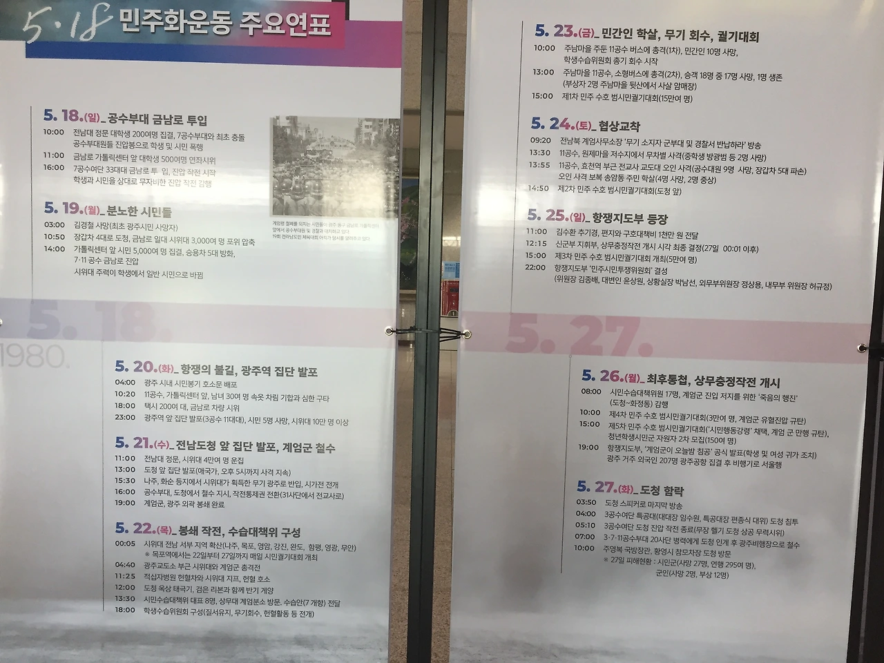 다시 몇 해가 지나 1997년에 '5.18 민주화운동'이 국가기념일로 제정되었고 정부 주관 기념행사가 열렸다. 사건이 일어나고 무려 17년이 지나서였다. 거리에서의 게릴라 사진전은 사라졌고 당시의 수많은 폭력과 잔혹한 사건들이 공론의 장으로 나왔고 역사의 증거가 되었다. 동시에 5.18의 상처와 치유를 이야기했다.