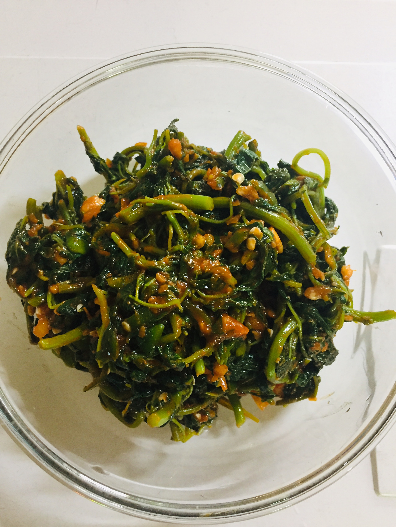 산뜻한 시작의 기운이 한풀 꺾였지만 그래도 벼르던 것을 멈출 수는 없다. 뻣뻣하면서도 출렁출렁 탄성 있는 회초리 같은 긴 대가 무슨 반찬이 될까 싶지만 메모해 놓았던 방법대로 따라 했다. 기름을 적당히 두른 팬에 볶다가 이것저것 양념들을 다 넣고 간이 배도록 볶아 주면, 볶으면서도 그 맛을 의심했던 것이 무색할 만큼 생각지도 않은 의외의 반찬이 만들어졌다. 가게에 봄나물 종류가 많이 있었지만 익숙한 비름나물도 한 바구니 샀다. 데치고 고추장과 된장을 섞어 무쳐 놓았다. 따뜻한 밥을 부르는 찬이 마련되었다.