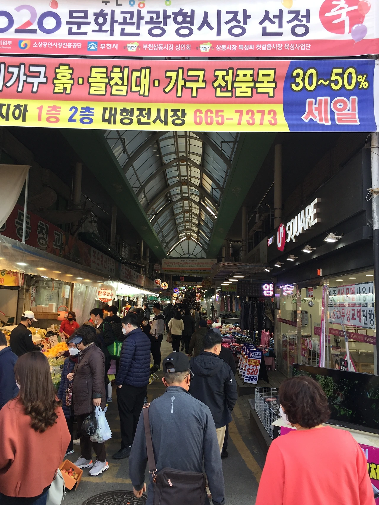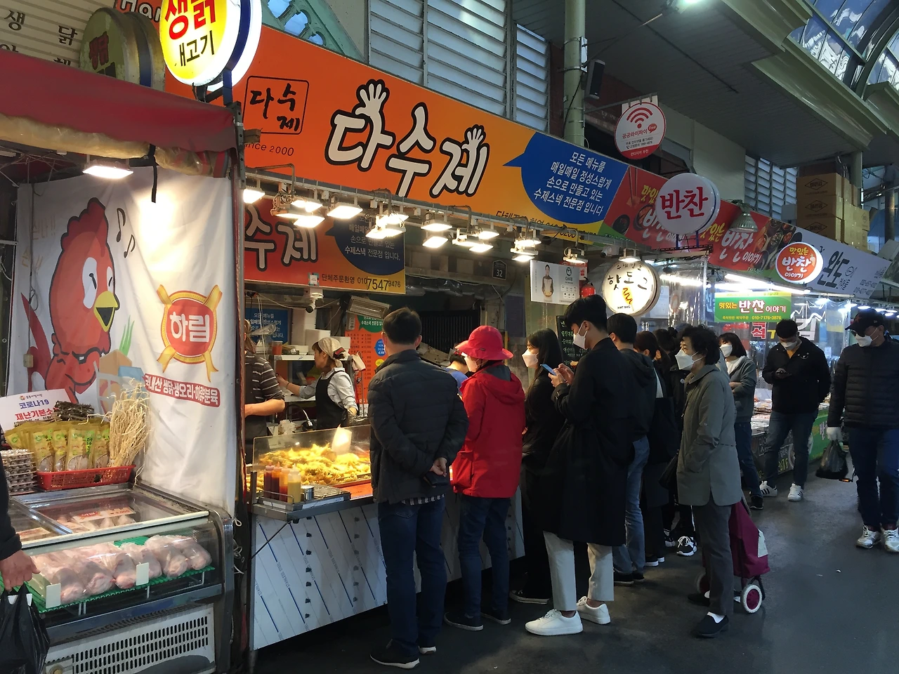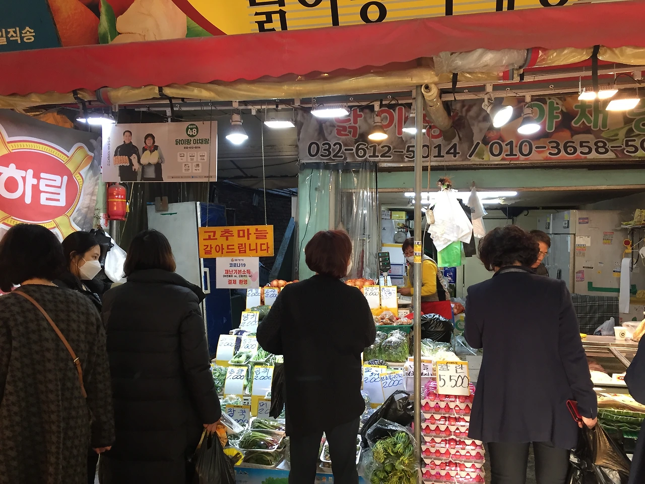 일요일, 대형 마트가 모두 문을 닫았다. 토요일에 라면 등 간단한 먹거리도 미리 사놓지 못했는데 어떻게 할까 생각하다 시장으로 향했다. 입구부터 사람들이 북적였다. 코로나 이전의 시장 모습, 아니 명절 때의 시장의 모습이었다. 이렇게 많은 사람을 볼 수 있다니... 사회적 거리두기가 너무 익숙한 단어여서 단번에 머리에 떠올랐지만 일단은 시장의 활기가 반가웠다.