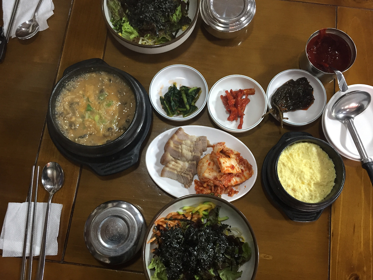 다음 주말도 변함없이 일주일 전의 시간표를 반복한다. 지난 주보다 집에서 가까운 식당이다. 처음 찾는 곳이지만 이른 시간에도 테이블이 빈 곳이 없다. 먹어 보지 않았지만 음식 맛에 확신을 갖는다. 직접 띄운 청국장을 끓여 비벼 먹을 수 있도록 식사가 준비가 된다. 달걀찜과 보쌈까지 나오는 이곳은 첫 방문이지만 한 번으로 끝낼 수 없는 곳이다. 마음속에 저장하고 시장과 마트를 들러 집에 돌아오면 지난주와 같이 맘껏 게으른 하루가 반복된다.