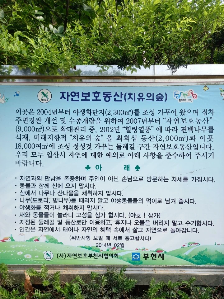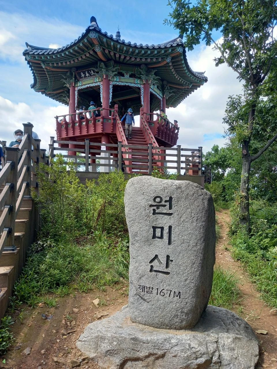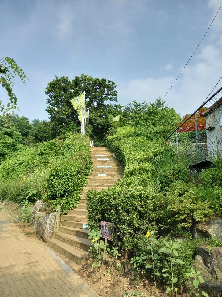 여름의 절정이라 세상은 온통 초록 초록했다. 다양한 꽃도 사이사이 만개해 있었다. 집에서 출발할 때부터 정상까지 산을 오르겠다고 마음을 먹었고 높이로만 보면 원미산은 167미터의 별것 아닌 얕은 산이었다. 하지만 중간에 급경사의 오르내리는 구간이 여러 번 있어서 운동의 강도는 좀 있는, 산을 즐기는 사람들에게는 산 타는 맛이 있다고 하는 산이었다.