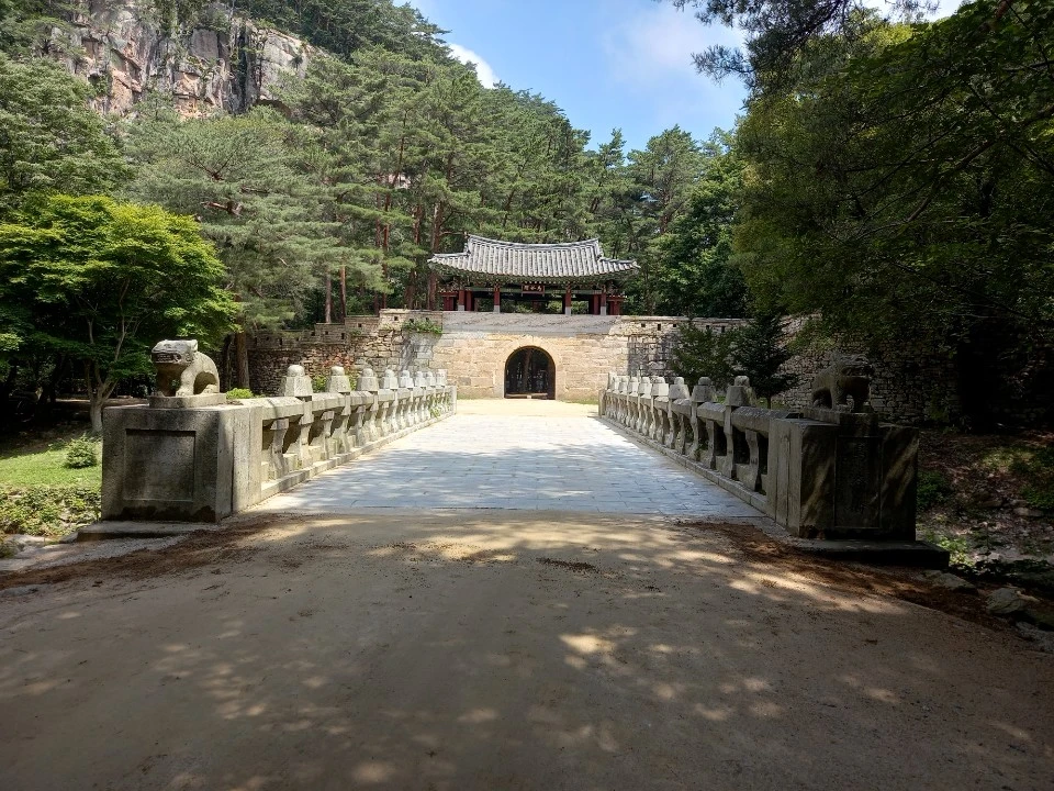 2 관문에 도착해서 여러 장 사진을 찍었다. 햇살은 점점 뜨거워지고 있었다. 돌아 내려오는 길은 올라갈 때의 그 길이지만 다르 느낌으로 새로웠다. 올라오며 경사를 느낄 수 없는 길이었음에도 내려오는 길은 뒤에서 누군가 가볍게 밀어주는 듯 발걸음이 가벼웠다.