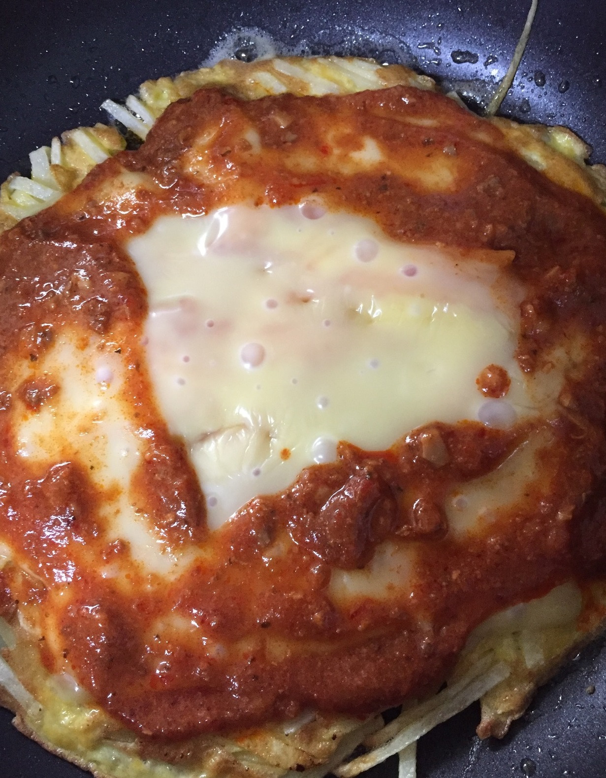 며칠이 지나 딸은 부엌에서 음식을 만든다. 한참을 뚝딱거린다. 모양도 크기도 다르게 채를 썰고 물에 담가 감자의 전분기를 뺐다. 기름을 두른 팬에 물기를 뺀 감자채를 넓게 펼쳐 얹었다. 거기에 소금 후추 간을 정당히 하고 감자의 색이 투명해질 때까지 약불에 굽는 것처럼 익힌다. 적당히 익으면 달걀을 풀어 그 위에 덮어주고 재료를 뒤집어서 익힌 후 그 위에 피자 소스를 듬뿍 바른다. 적당한 토핑 거리를 고민하다 마땅한 것이 없으니 그냥 치즈만 왕창 덮는다. 프라이팬 뚜껑을 덮고 치즈가 흐물흐물해질 때까지 기다리니 감자 피자가 완성되었다.