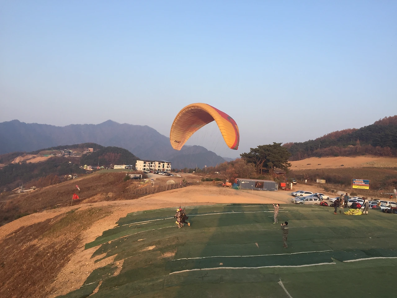 다음은 패러글라이딩 활공장으로 이동했다. 활공장으로 오르는 길은 좁고 경사가 급했다. 오가는 차선이 따로 구분되지 않아 양보의 미덕은 필수. 한참을 구불구불 오르니 탁 트인 넓은 평지가 나왔다. 패러글라이딩은 10년쯤 전에도 한번 시도해보고 싶었는데 이번에도 마음이 오락가락했다. 이미 짚와이어를 타서 그 설렘도 아직 가시지 않았으니 이 마음만으로 한 5년쯤은 구름 위를 걷듯 살 수 있을 것 같아 참기로 했다.