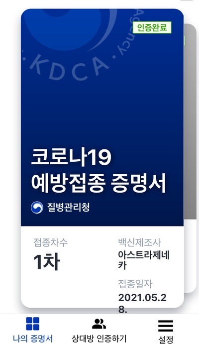 할인을 받으려면 접종 확인서가 있어야 한다고 해서 '질병관리청 COOV' 모바일 앱을 통해 '코로나19 백신 전자 예방접종증명서'도 이미 발급받았다. QR코드로 간편 인증도 가능하다. 오랜만에 발 빠른 추진력을 발휘했다.