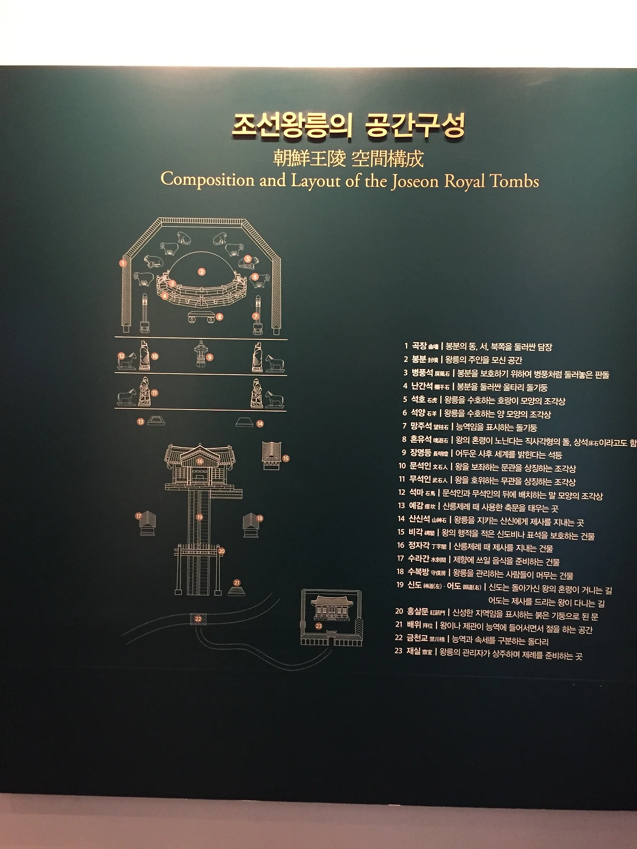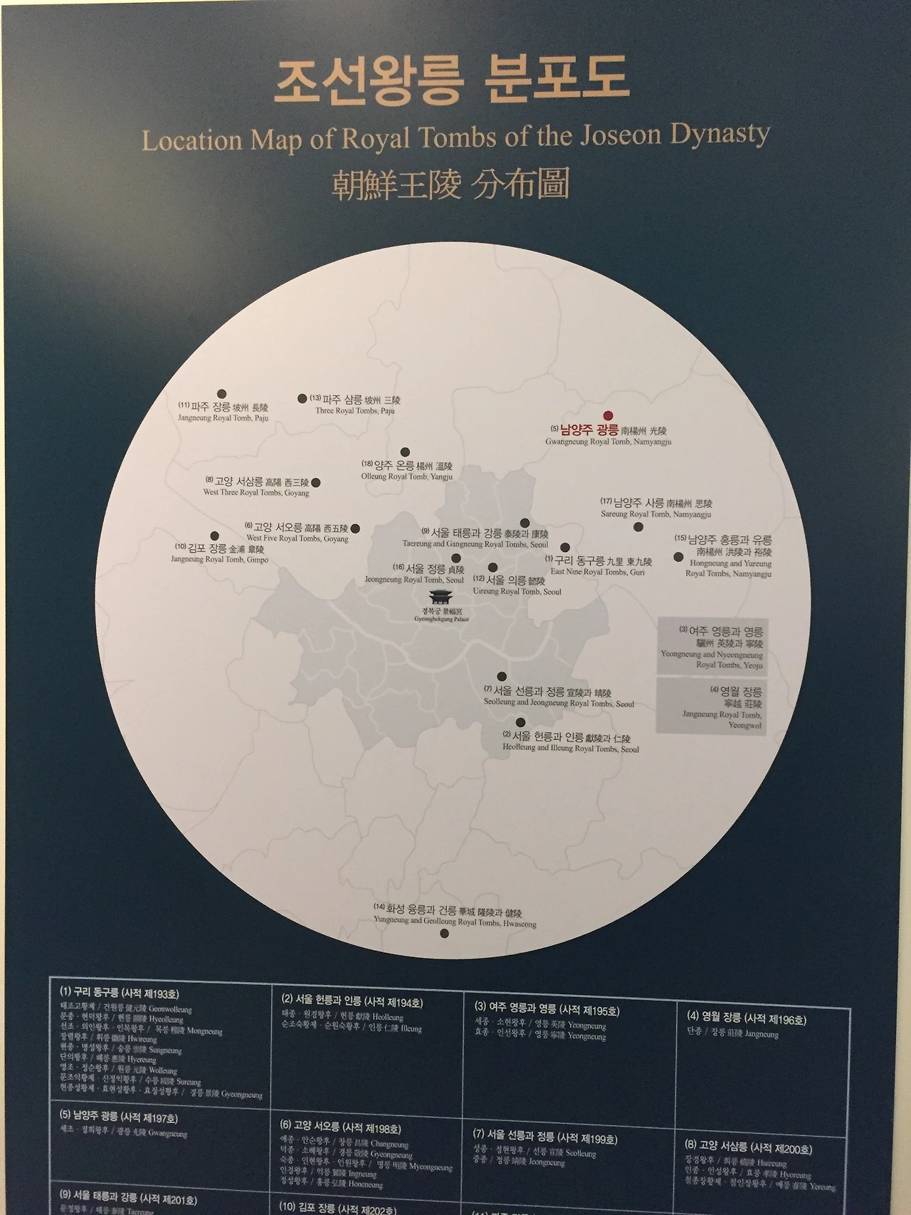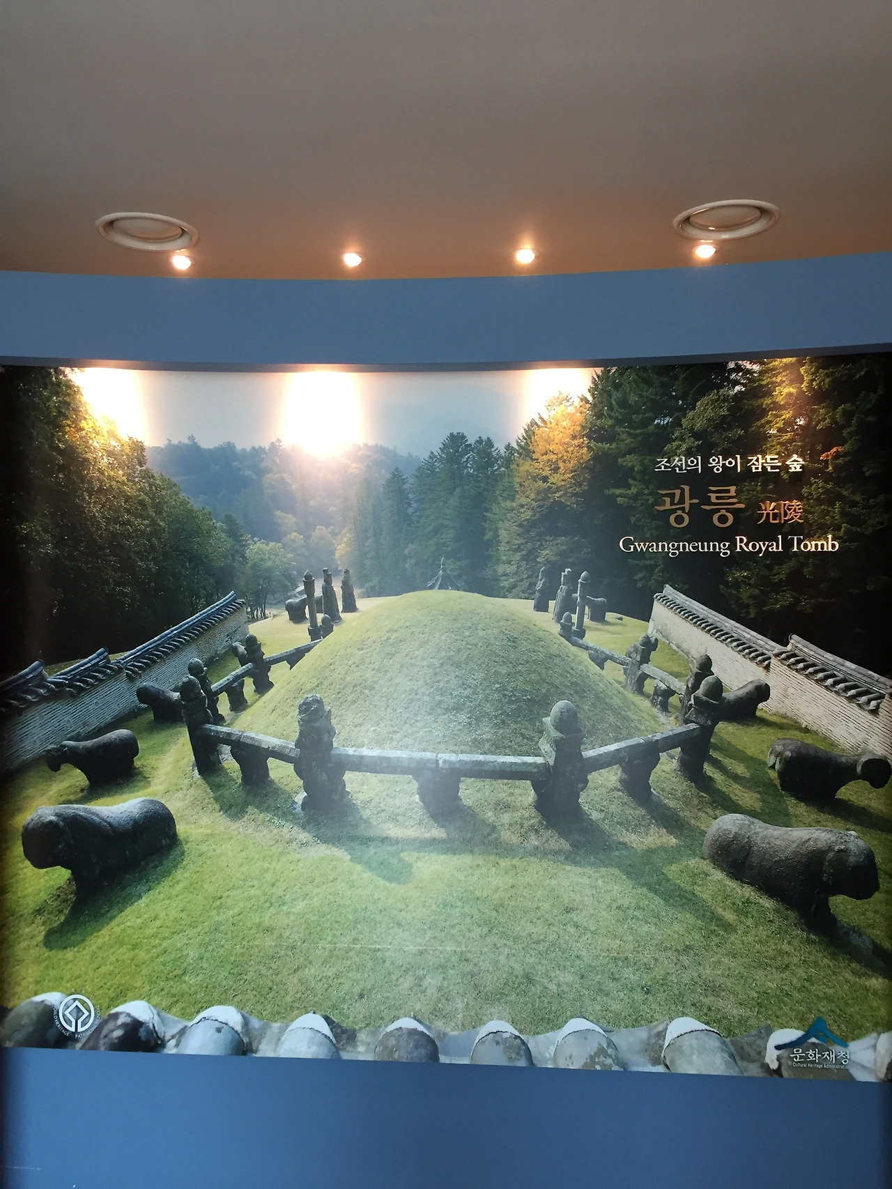 역사문화관에서 세조의 국장 절차를 날짜별로 정리해 놓은 도표를 보았다. 승하 이후 이틀째에 목욕시키고 9벌의 옷을 입히고, 소렴 때 22벌의 옷을 입히고, 대렴 때 90벌의 옷을 입혔다는 안내 글이 적혀 있었다. 한 시간에 열 벌을 입혀도 아홉 시간을 내내 입혀야 되는. 헉! 돌아가신 임금님이 그곳에서도 왕으로서의 풍모를 유지하며 통치하도록 저승에서의 옷까지 마련해서 입힌다는 의미일까, 궁궐의 예법도 장례 예법도 모르지만 놀라웠다.