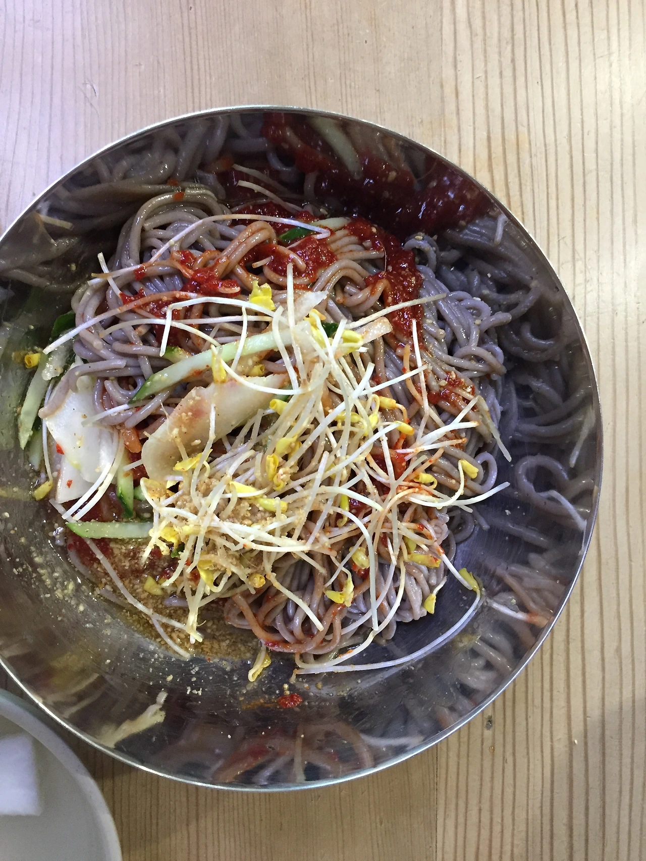 한 시간 남짓의 산책을 마치고 왕릉을 나오니 점심시간, 메밀 막국수와 메밀 돈가스로 배를 채웠다. 메밀 싹에 겨자 소스를 입힌 샐러드가 새콤 달콤 싸르르한 미각을 자극했다. 비빔 메밀국수의 양념도 충분한 양념의 양에 비해 맛이 강하지 않아 시원하게 먹을 수 있었다. 드디어 커피 쿠폰을 사용할 순간이다. 광릉수목원점 투썸플레이스. 아메리카노와 아이스크림을 테이크 아웃해서 돌아오는 길, 내가 사는 부천에 신종 코로나 바이러스 확진 환자가 생겼다는 뉴스를 접했다.