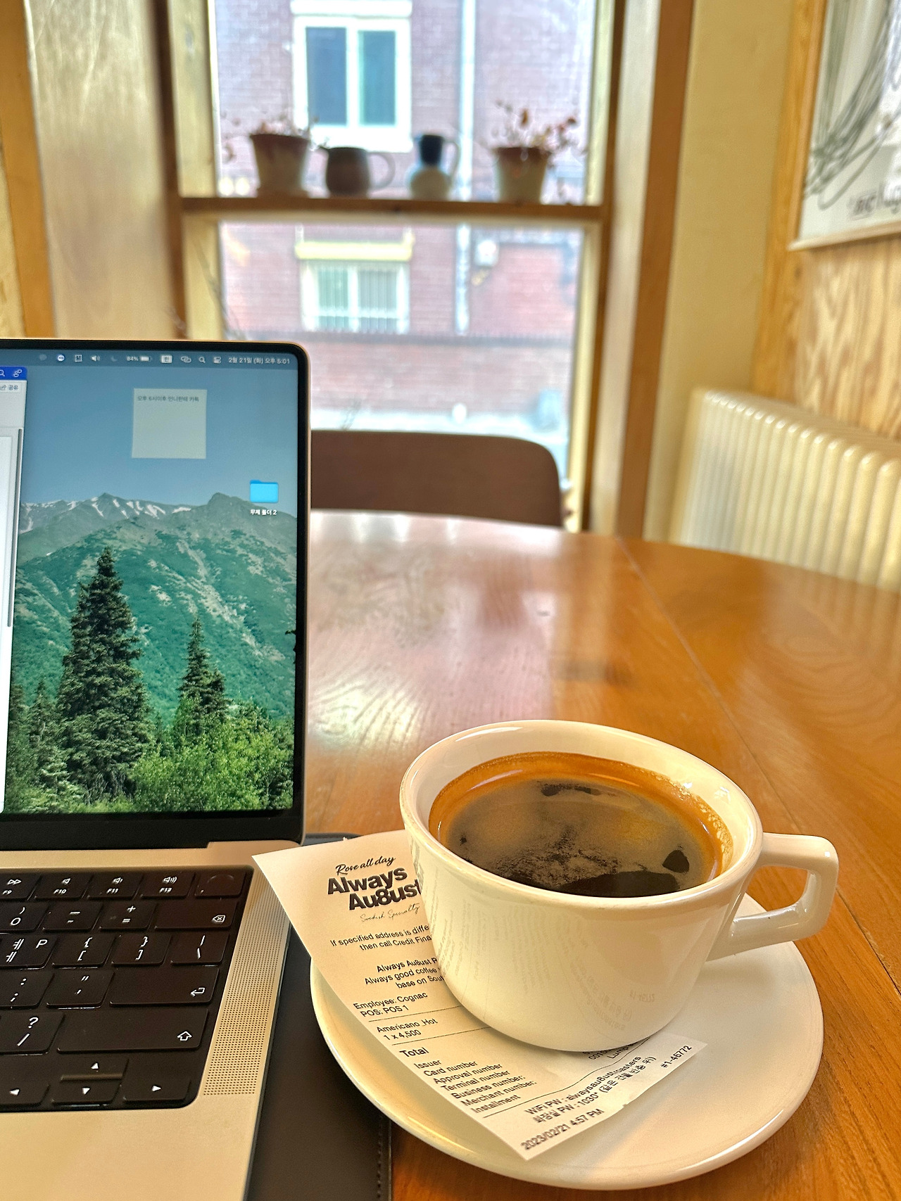 나에게 행복구독료 중 가장 큰 비중은 ‘카페’다. 오전 알바를 마치고 노트북이나 책 한 권을 챙겨 카페로 향한다. 통창으로 된 카페에 앉아 아무 생각 없이 커피 한 잔을 하고 있을 때면 그렇게 행복할 수가 없다. 편한 의자에 앉아 재즈를 듣고 속으로 그루브를 탄다. 이때 기분 아는 사람 분명 있을 거다. 거기다 은은한 커피 향까지 더해지면 커피 향과 함께 행복이 내 몸속으로 들어오는듯한 느낌이 든다. 내가 오늘 이 시간을 즐기려고 아침부터 열심히 일을 했구나 싶다. 한마디로 나에게 보상을 주는 거다. 그래서 난 커피 값엔 부자처럼, 옷 값에는 거지처럼 돈을 쓰기로 결정했다.