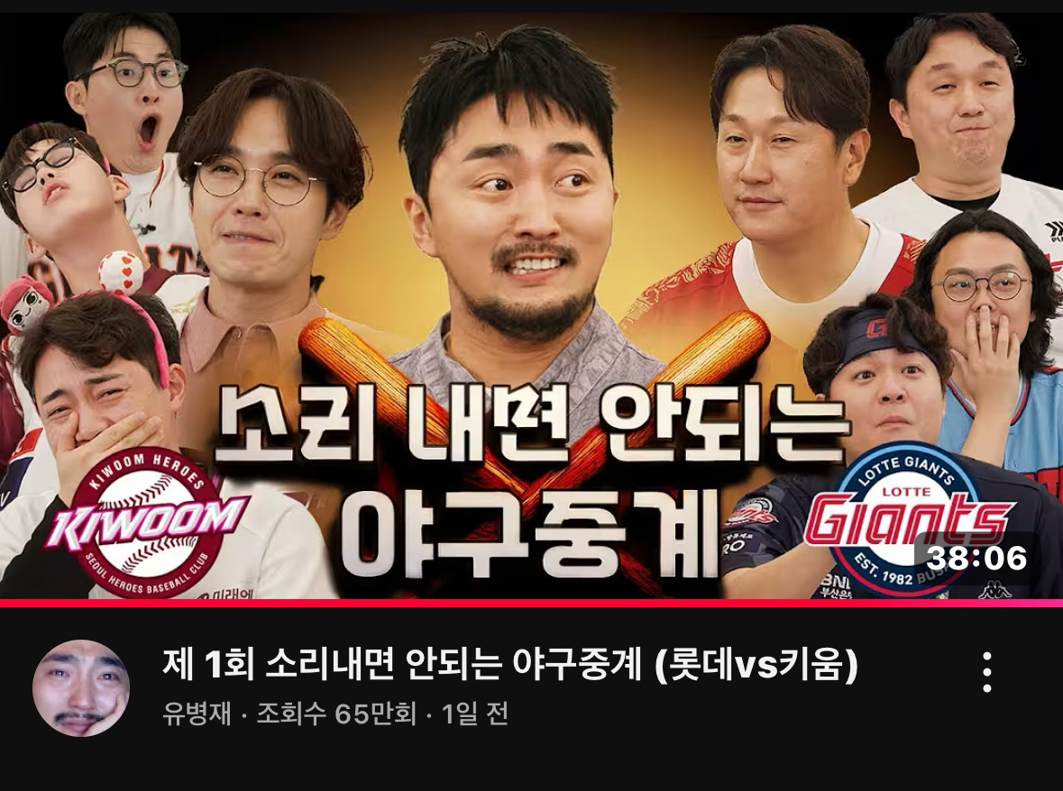 최근 유튜버 유병재 채널에 올라온 한 영상이 야구팬 커뮤니티를 술렁이게 했고 조회수가 폭발했다. 제목은 <소리 내면 안 되는 야구중계>. 기존에 진행하고 있던 <웃으면 안 되는 생일파티> 포맷을 그대로 가져왔다. 최근 야구의 인기가 어마어마해서인지 콘셉트는 그대로지만 주제를 바꾼 새로운 콘텐츠이다. 이 시리즈의 1회는 키움 히어로즈와 롯데 자이언츠 팬들을 각각 초대하여 함께 경기 관람을 한다. 관람 중 소리 내는 순간마다 벌점을 부여하는 룰 아래 야구를 관람한다.