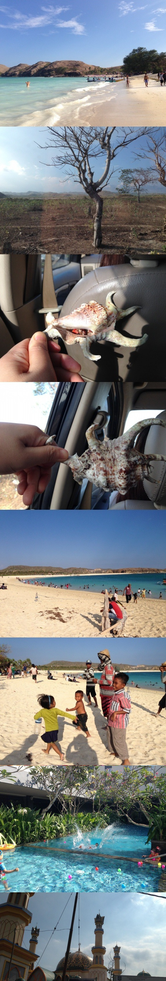 롬복. 발리에서 동쪽으로 가까이 위치한 섬. 직항이 없어서 자카르타나 발리를 경유한다. 때묻지 않은 순수함이 좋았는데 발리처럼 관광지로 계속해 개발중이다. 방문 첫 해에는 동양인이 거의 없었으나 두번째 해에는 조금은 다른 모습. 지역에 따라 산호 모래, 흑모래 등 모래종류가 다양하다.
