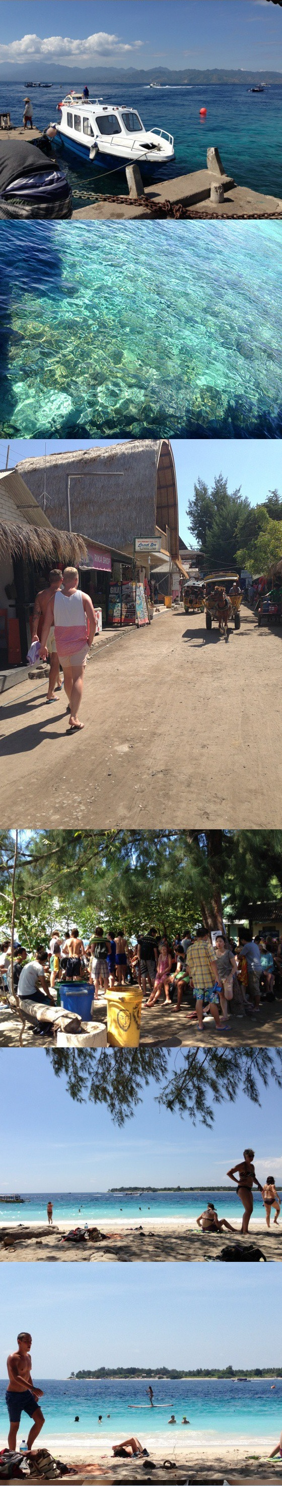 보트를 타고 가서 길리섬에서도 놀 수 있다. 보트는 퍼블릭과 패스트 두 종류. 패스트를 타면 30분만에 도착. 길리는 비포장도로가 대부분. 고양이가 많다. 해변에 있는 공중 샤워시설&화장실은 위생하고 거리가 멀다. (재래식은 아님). 관광객들이 많고 99%가 백인. 해변에는 배들이 많이 들락거려 수영하기에 약간 불편. 당일치기로 구경하고 오는 것이 괜찮다.