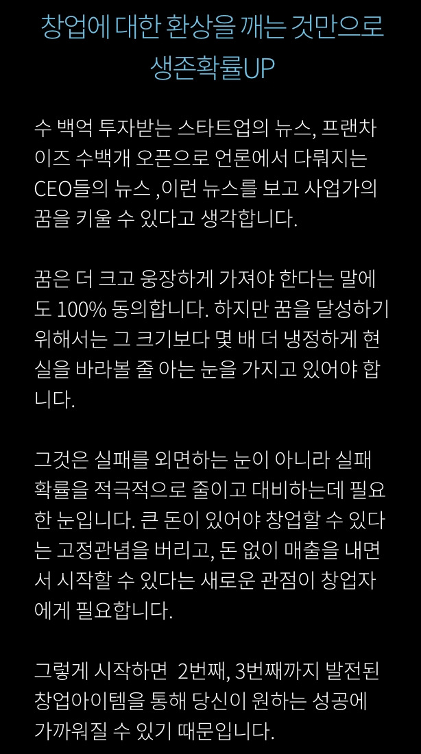 “그건 바로 콘텐츠페이지를 알려줍니다.. 과거 자신이 고수들에게 콘텐츠 상품을 사봤던 경험들은 오히려 현재 자신이 멋진 페이지를 만들어주는 영양분이 되어줍니다.”