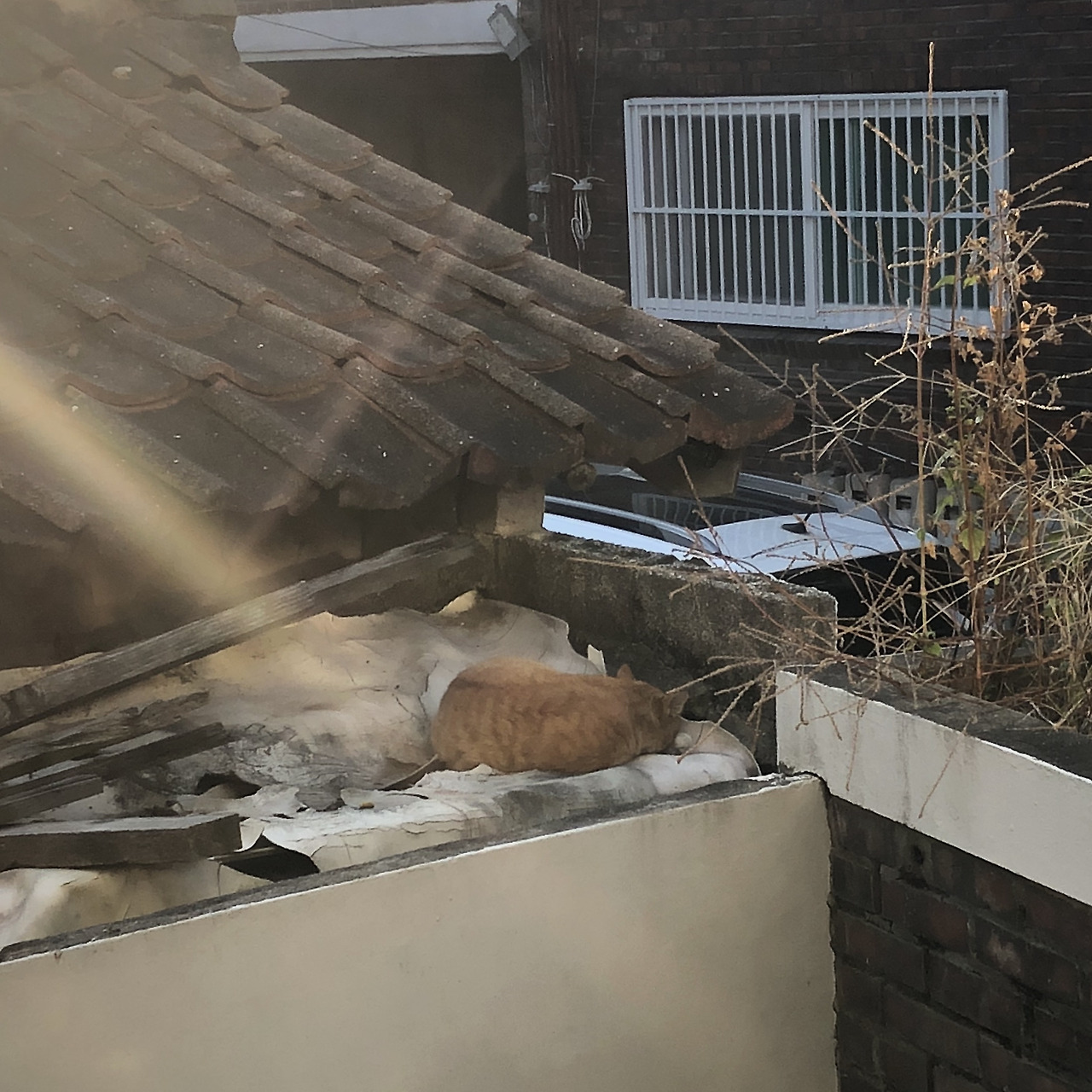 5분도 채 되지 않는 시간에 잠깐 졸았다가 화들짝 놀라서 깼다. 일정이 있어 나갈 시간이 다 됐다. 활짝 열어두었던 현관문을 닫고 부리나케 준비했다. 옷을 다 입고 가방을 챙기고 신발까지 신고서 다시 현관문을 열었다. 아까 나를 긴장하게 했던 그 고양이는 옆집 지붕 위에서 세상 모든 평화를 다 만끽하고 있다는 듯이 자고 있었다. 해를 쬐며 지붕 밑에 웅크리고 앉아 자는 모습이 그렇게 평화로울 수가 없었다.