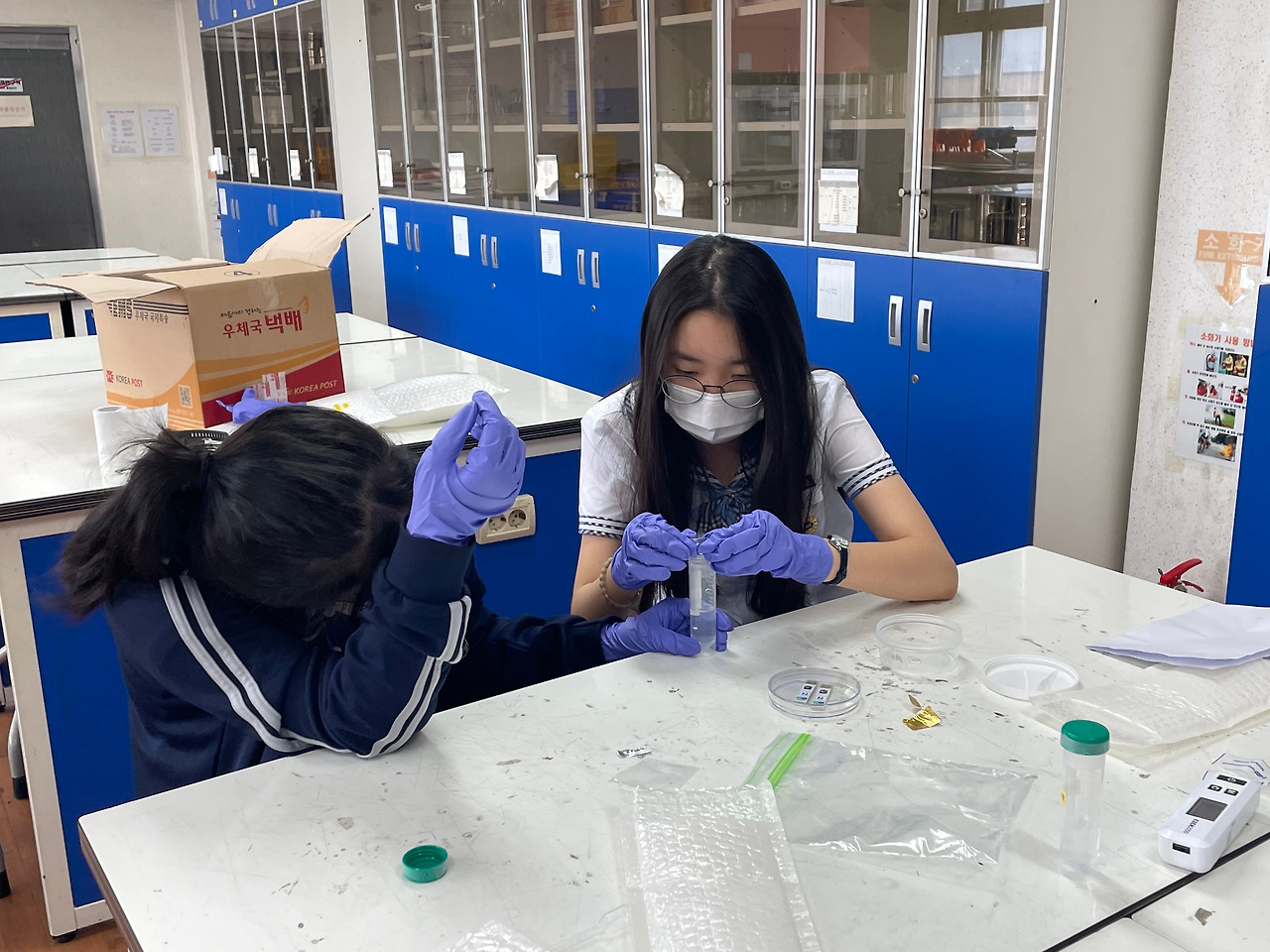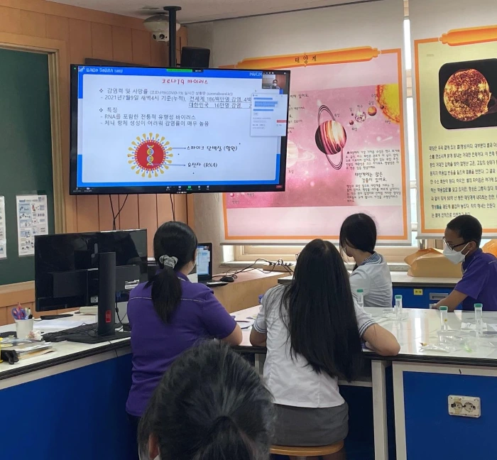 우리는 2021년 7월 9일 금요일 오후 1시~3시까지 과학실에서 실험에 참가하였으며 '바이러스를 검출하는 바이오센서'라는 주제로 나노종합기술원의 이태재 박사님과 함께 진행되었고 4인 1조를 형성하여 실험을 진행하였다.
