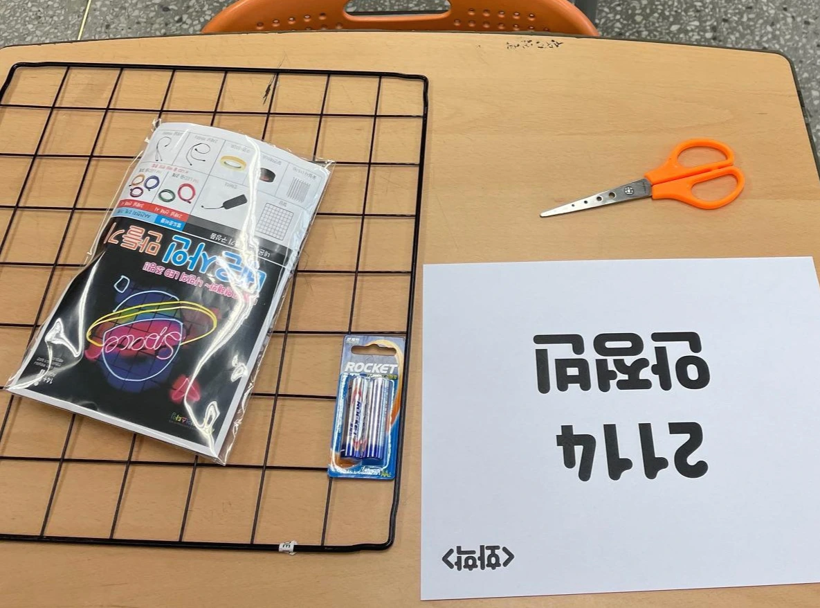 그래서 우리는 미리 준비물을 준비하여 자리에 두었고, 조심해야 할 사항들을 크게 작성하여 앞에 붙이고 안내하였다. 그리고 수시로 돌아다니며 학생들이 더 잘 제작할 수 있도록 도왔다.