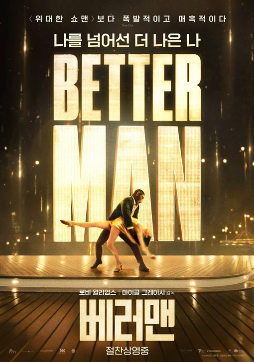 영화 ‘베러맨’은 영국의 슈퍼스타 로비 윌리엄스의 전기 영화다. 어릴 때부터 남들 앞에 서길 즐기며 끼가 많고 노래에 남다른 재능을 보인 로비는 어릴 적부터 슈퍼스타를 꿈꿨고 보이밴드 ‘테이크 댓’으로 데뷔해 영국 전역에서 최고의 인기를 누린다. 하지만 인기가 커질수록 알코올 중독과 약물 남용 등 각종 사건사고로 멤버들과 갈등을 빚고 결국 팀을 탈퇴한다. 화려한 솔로 복귀에 성공하지만, 늘 우울증에 시달렸고 내면의 상처와 불안은 점점 커져만 간다. 자신을 버리고 꿈을 좇아 떠난 아버지의 영향 탓인지 아무것도 아닌 쓸모없는 존재 ‘노바디(Nobody)’가 될까 봐 늘 전전긍긍했다. 무대 위에 설 때마다 환영에 시달렸고 끊임없이 그를 괴롭혔다. 술과 마약에 찌든 슈퍼스타의 뻔해 보이는 배부른 투정이 한심해 보이기도 하지만 내면의 깊은 상처와 끊임없이 대면한 뒤 자기혐오를 극복해 나가는 과정이 꽤 진정성 있게 다가온다.
