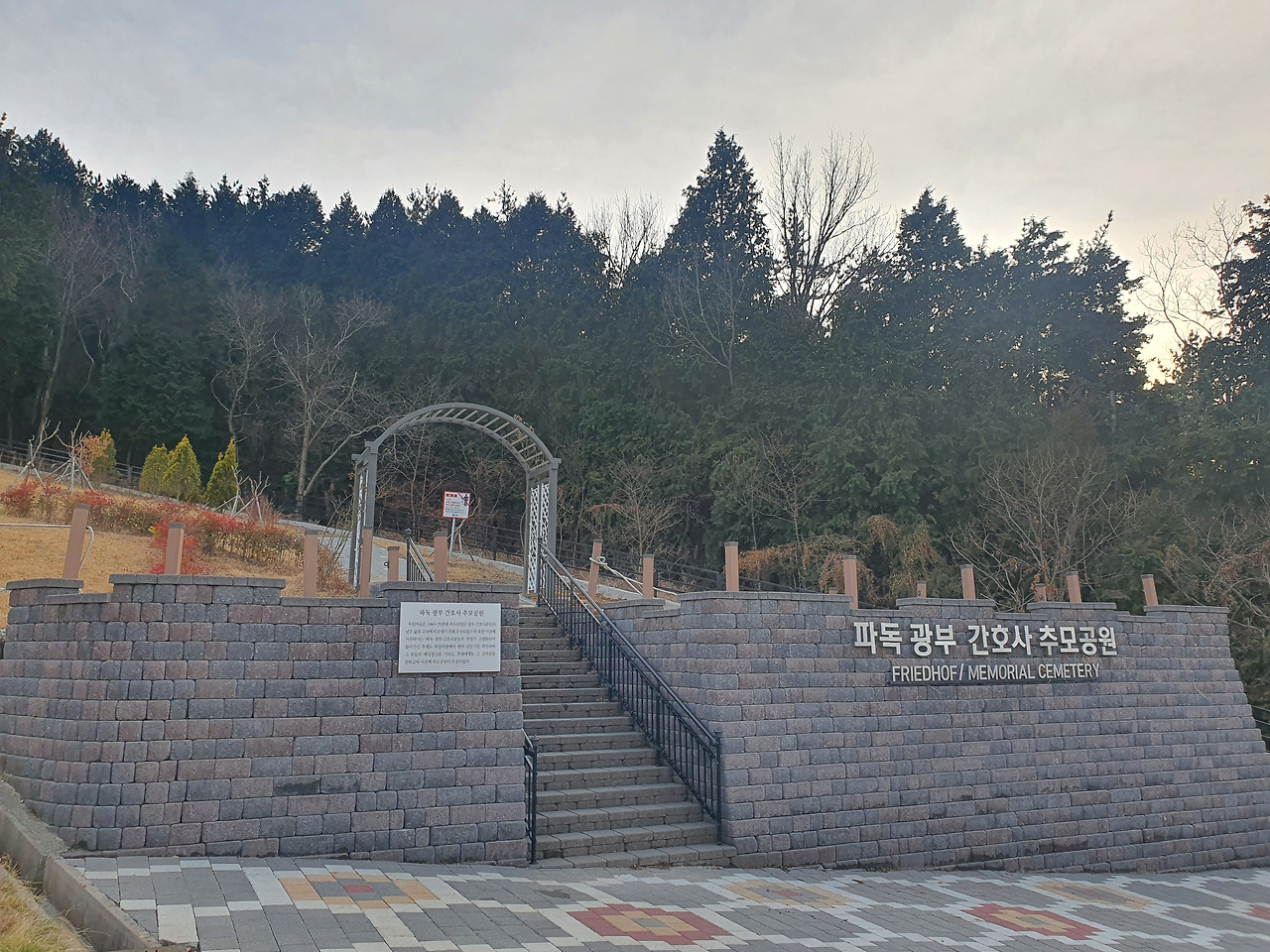 거리 양 옆으로는 화려한 간판의 레스토랑과 카페 등이 불을 밝히고 있다. 길을 오르다 멀리 남해 바다뷰가 기대되는 카페를 발견해 잠시 자리를 잡았다. 이번 여행 중 마무리하고 싶은 e북을 정신없이 읽어 내려갔다. 2시간쯤 흘렀을까. 마감시간이 있는 원예예술촌과 남해 파독전시관이 퍼뜩 떠올랐다. 부지런히 올랐는데 파독마을전시관(입장료 1000원) 입장시간(관람은 오전 9시부터 오후 6시까지, 입장은 오후 5시 30분 마감)이 지나있었다. 원예예술촌은 입장료(5000원)가 있고 꽃도 피지 않았을 2월인 데다 바람도 워낙 부는 날씨 때문에 볼 생각이 없었지만, 파독마을전시관을 놓친 건 아쉬워라.