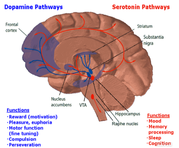 그림1. 세로토닌과 도파민의 신경계 작용<세로토닌>